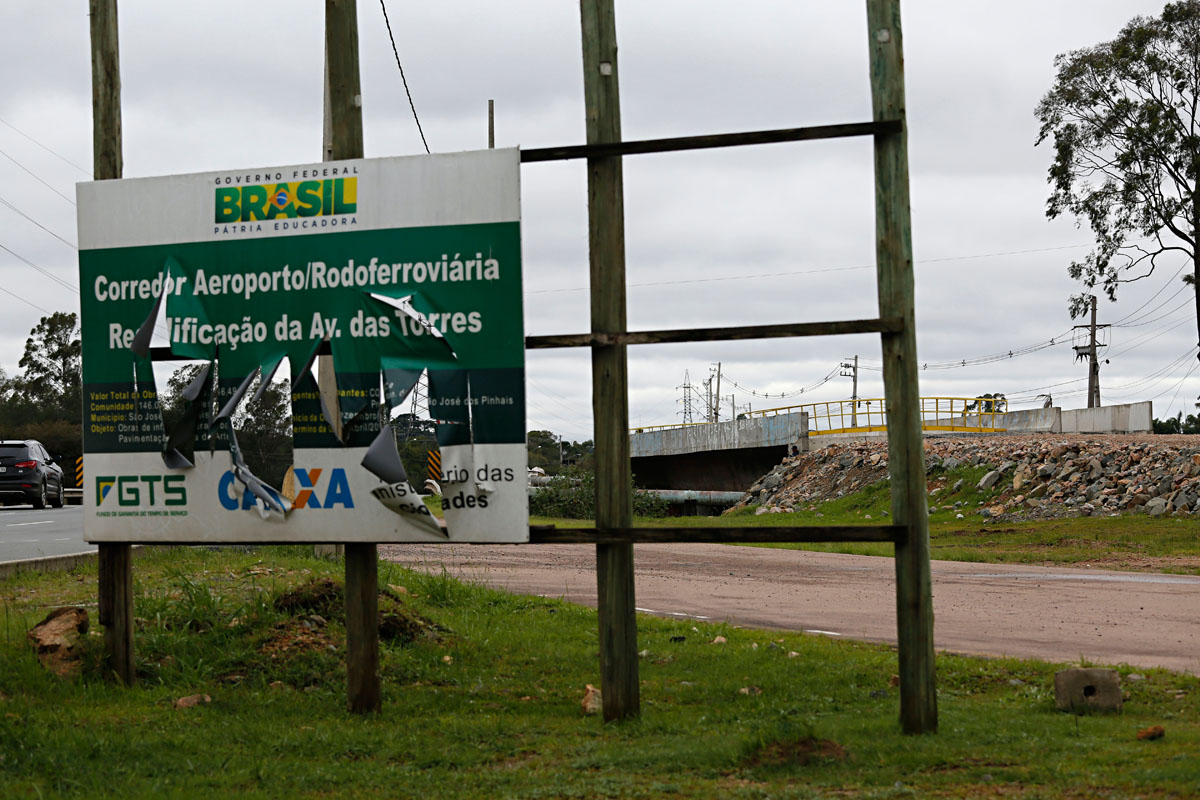 Na divisa entre Curitiba e São José dos Pinhais, a ponte sobre o Rio Iguaçu, que fará parte do prolongamento da Avenida Salgado Filho até a Rua Joaquim Nabuco, formando uma via paralela e alternativa à Av. das Torres, há operários e maquinário, mas os trabalhos seguem a passos lentos.