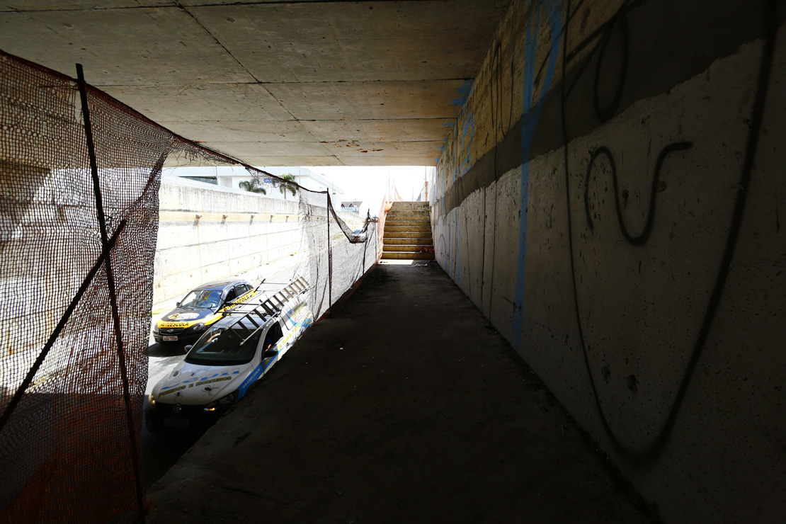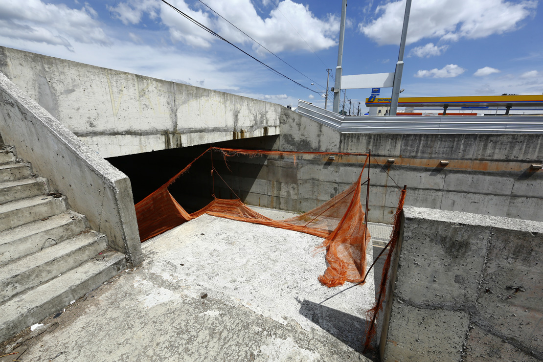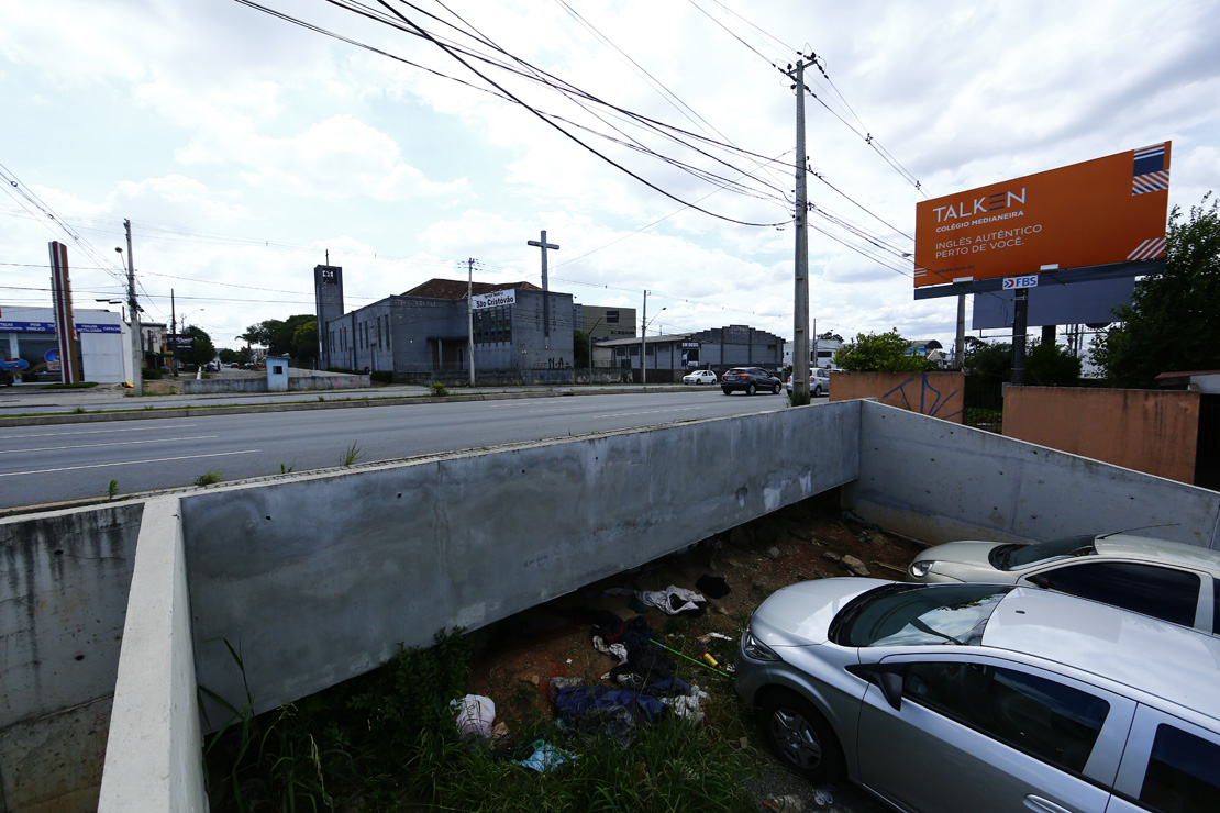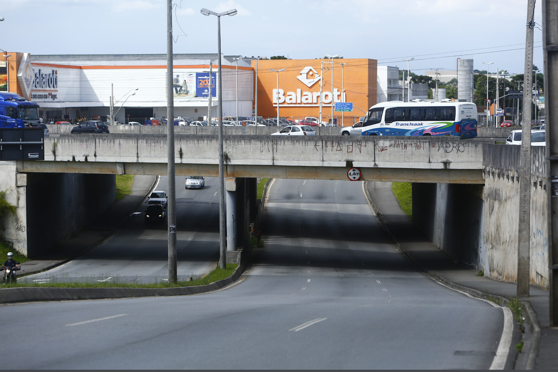 Alguns quilômetros à frente e logo depois do portal de São José dos Pinhais, a trincheira da Rua Arlindo Costa, sob a Avenida Comendador Franco, já é utilizada, mas ainda não está pronta. A sinalização não está completa e, para os pedestres, o perigo é ainda maior. Na passarela, não há corrimão e nem mesmo grades de proteção. Há apenas algumas barreiras, resquícios da obra, mas que são facilmente rompidas.