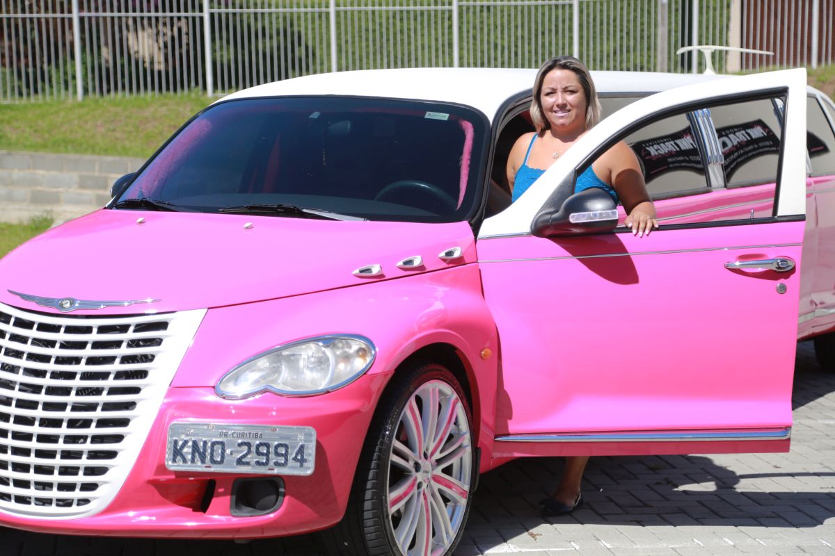 E a limousine rosa é bem disputada. Em três anos rodando, já chegou a 500 eventos realizados. Toda semana é alugada e já chegou a fazer sete eventos diferentes num só dia.