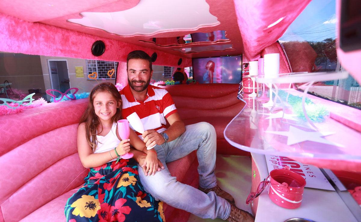 E a festa chique cor de rosa deu o que falar por semanas nos grupos de amigos dos pais. “A gente viu na rua uma vez e a Lara ficou curiosa. Então virou um sonho pra ela fazer a festa na limousine. E para nós pais foi marcante, recompensador ver o sorriso dela, a alegria das meninas, o agradecimento dos pais depois. Quisemos fugir do tradicional, fazer algo diferente, e valeu muito a pena”, conta o engenheiro Alexandre Bortolli, 39 anos. Além de buscar as meninas me casa, a limousine fez mais duas paradas: um para tomar água de coco e fazer uma dancinha, e a outra para um brinde com champanhe.