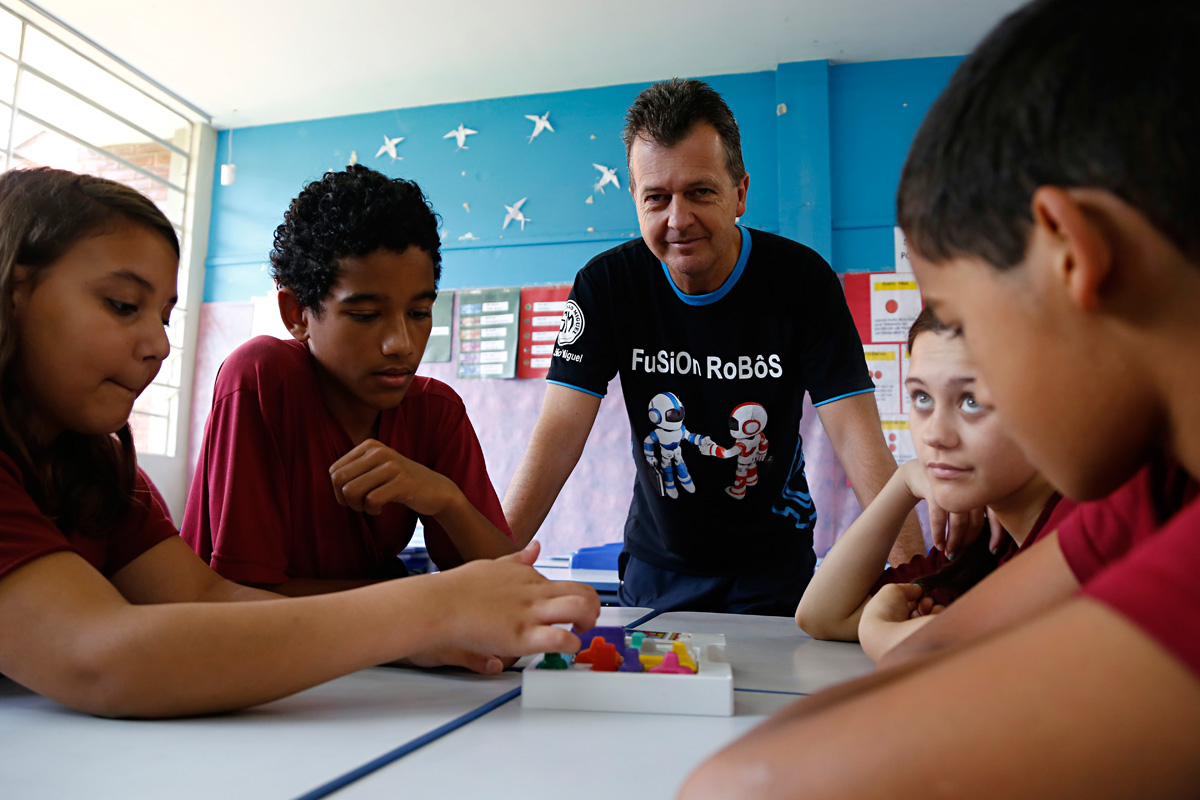 Desde o segundo semestre deste ano, a rotina nas aulas de Língua Portuguesa e Matemática ficou diferente na Escola Municipal São Miguel, na CIC. Os cadernos, lápis e livros são trocados, uma vez por semana, por jogos de tabuleiro que incentivam o desenvolvimento intelectual dos aproximadamente 550 estudantes de sexto ao novo ano da instituição.