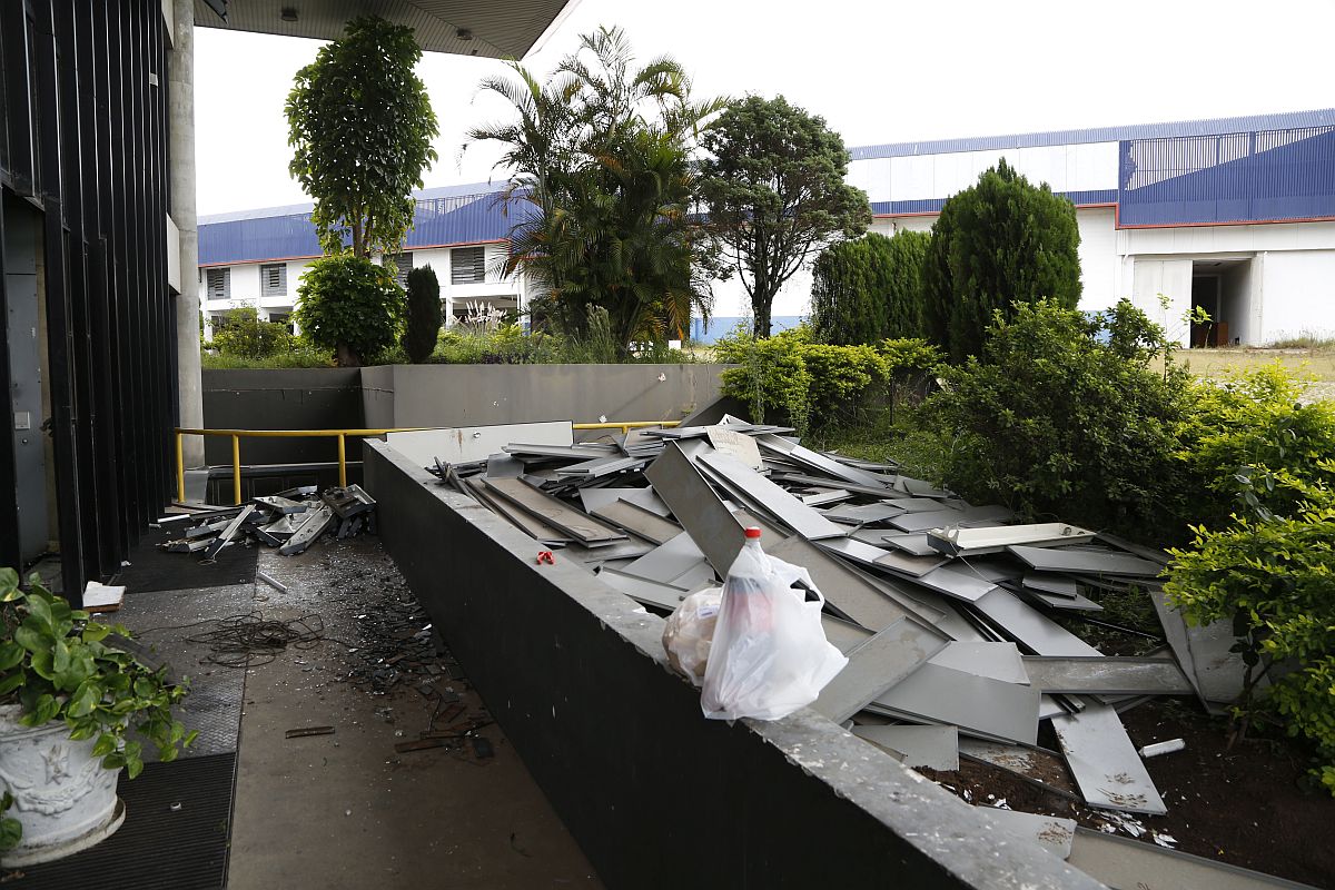 A falta de vigilância no local é nítida. A reportagem da Tribuna facilmente acessou a parte interna do complexo, após duas pessoas abrirem o portão principal identificando-se como funcionários de uma empresa de demolição. Segundo essas pessoas, uma ação de retirada de todo o tipo de equipamentos estava sendo feita nas edificações do espaço e foi possível ver alguns materiais fiação de cobre, lâmpadas, armários, mesas espalhados pelo chão. Na entrada, apesar de uma guarita indicar a presença de segurança 24 horas logo ao lado do portão, não havia ninguém fazendo a vigilância.