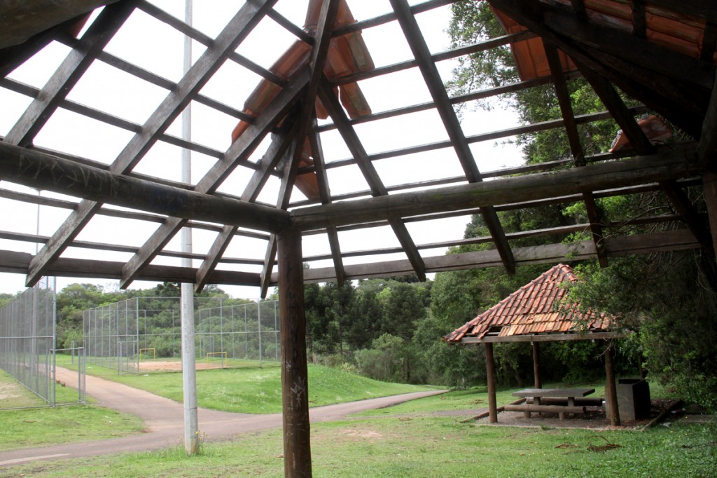 As churrasqueiras continuam sem telhado e cobertas por pichação. O mesmo acontece com as construções do local, que estavam vazias no dia em que a reportagem visitou o parque.