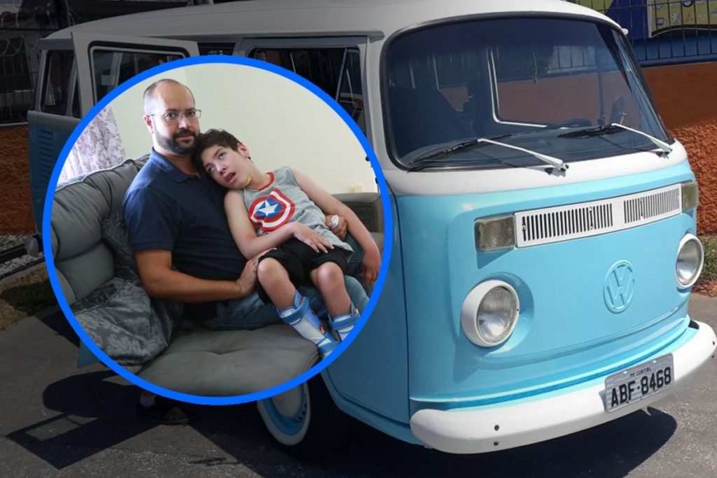 A rifa de uma kombi ano 1985 deve arrecadar recursos para manter a vida do Felipe Fernandes, 8 anos, menino que nasceu com paralisia cerebral. O pai, o analista de logística José Eduardo Fernandes, 40 anos, cuida do filho com a ajuda de outras duas cuidadoras 24 horas por dia. A mãe morreu cinco dias depois do parto. Por isso, a família precisa de recursos para manter os cuidados, tratamentos necessários e comprar diversos outros materiais para o Felipe.