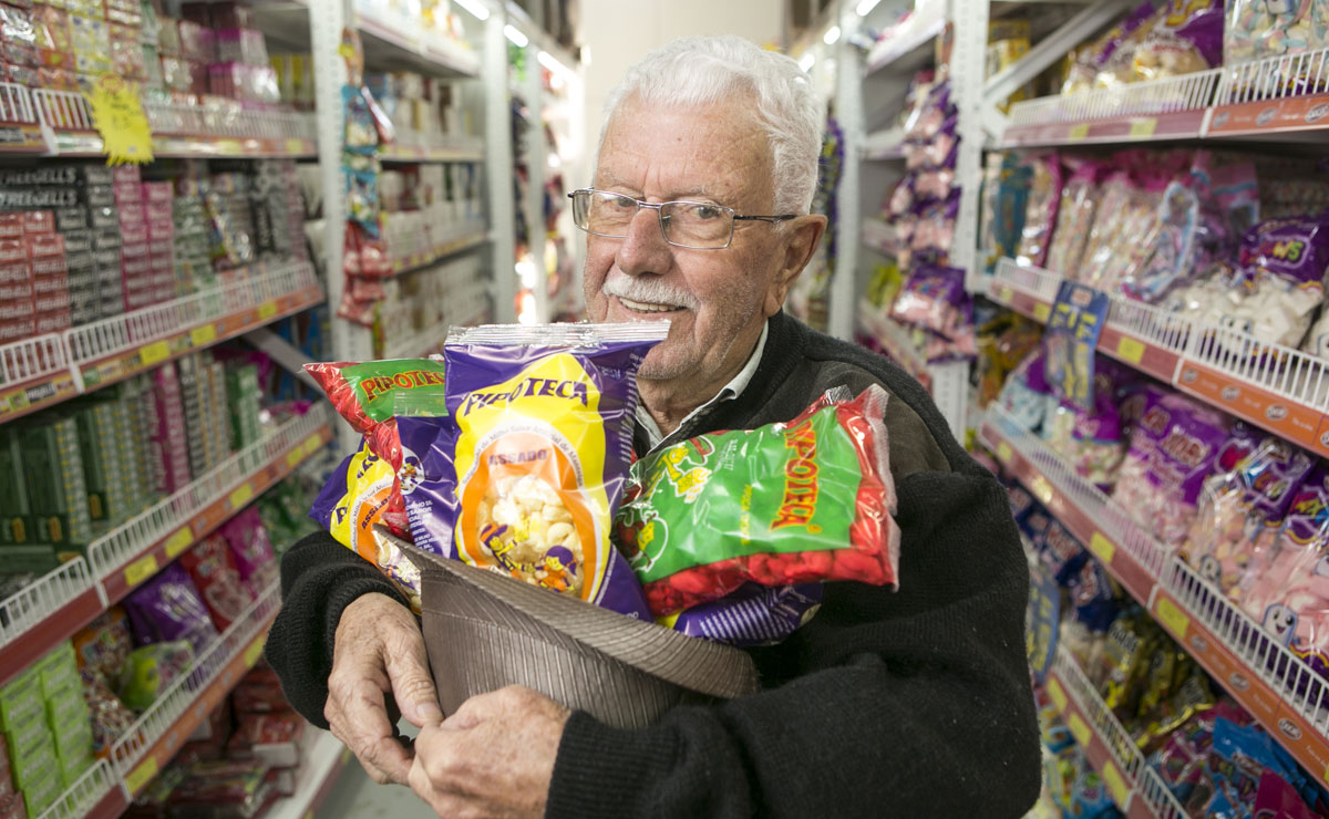 À porta do galpão de 500 metros quadrados o entra e sai de clientes é intenso. Do alto da escadaria da loja, os olhos plácidos de Nossa Senhora do Carmo acompanham o movimento pelos corredores abarrotados de guloseimas, onde funcionários atarefados se misturam aos consumidores que, de olho nas gôndolas cheias de fardos coloridos, se demoram na escolha do que levar pra casa. Salgadinho de pizza ou filetinhos crocantes de bacon? Pipoquinha de queijo ou a clássica doce? Paçoca? Bala de gelatina? Difícil decidir. No meio de tanta gostosura, um pacotinho roxo já bem conhecido aparece em quase todos os carrinhos. É a boa e velha pipoca de manteiga: queridinha absoluta do público e carro chefe da tradicional marca curitibana Pipoteca que, nesta semana, comemorou 40 anos no mercado.