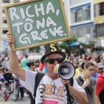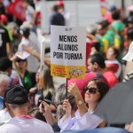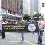 Moradora de Três Barras (PR), cidade situada a cerca de 600 km de distância de Curitiba, a professora estadual de ensino médio e fundamental Ione Aparecida Bresola Rocha, 50, veio à capital paranaense para protestar contra as medidas adotadas pelo governo estadual. “Saímos à meia-noite e chegamos aqui às 9h. Como professora, minha principal reinvindicação é que o Estado mantenha nossos diretos já adquiridos, como aposentadoria, data-base, progressões e hora-atividade. Hoje, temos um dia a dia difícil em sala de aula, com mais de 30 a 40 alunos por turma. E é humanamente impossível conseguir educar e passar conhecimentos para estes estudantes. Precisamos manter nossos diretos, não queremos nada além do que já existe”.