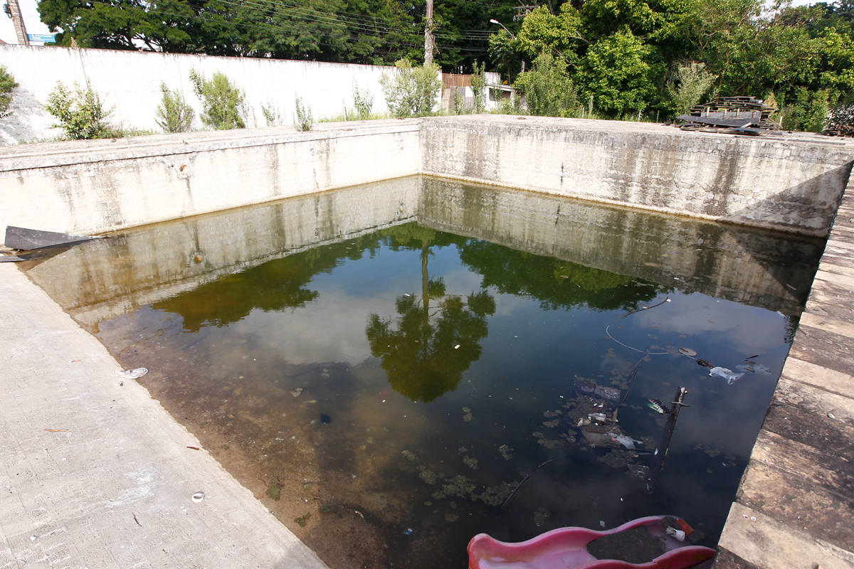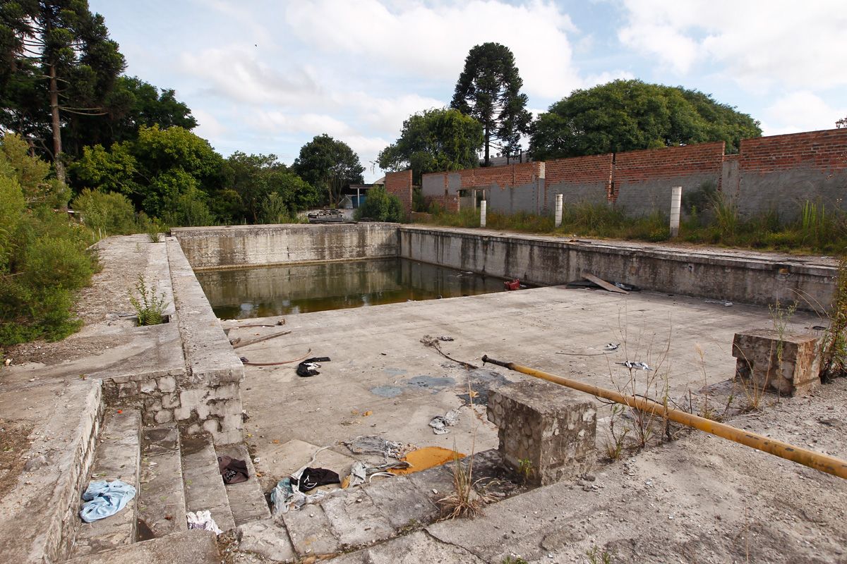 O quartel do Corpo de Bombeiros da Cidade Industrial de Curitiba (CIC), localizado na Rua Arthur Martins Franco, 180, está abandonado desde que uma reforma no local, iniciada há três anos, foi interrompida há um ano e meio. No terreno, há uma piscina de 18×30 metros – que acumula uma água verde mal cheirosa, mato alto, sobras de material de construção e lixo espalhado, com embalagens plásticas e recipientes que podem armazenar água da chuva e virar foco de dengue.