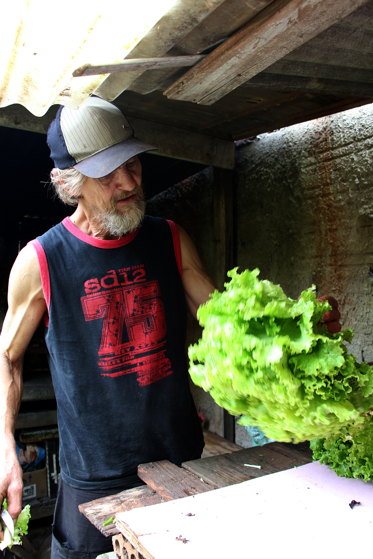 Ele vende alface, salsinha, cebolinha, couve, almeirão, pepino e outras hortaliças a preço baixo. “O diferencial é o sabor. Elas são orgânicas, é mais saúde pra quem vai comer”, garante ele, que destaca o aspecto das folhas, que chegam a crescer mais que o comum.