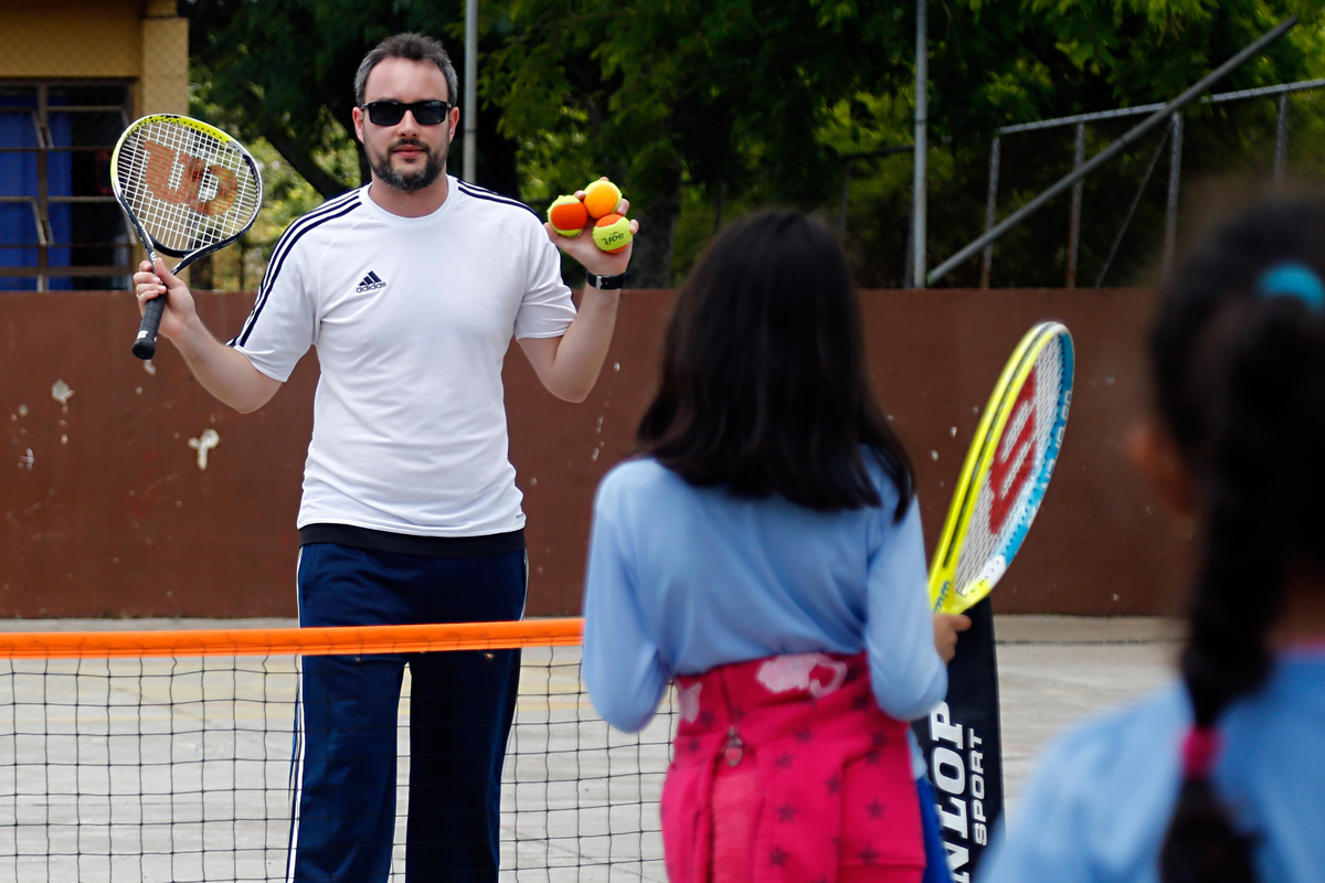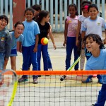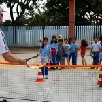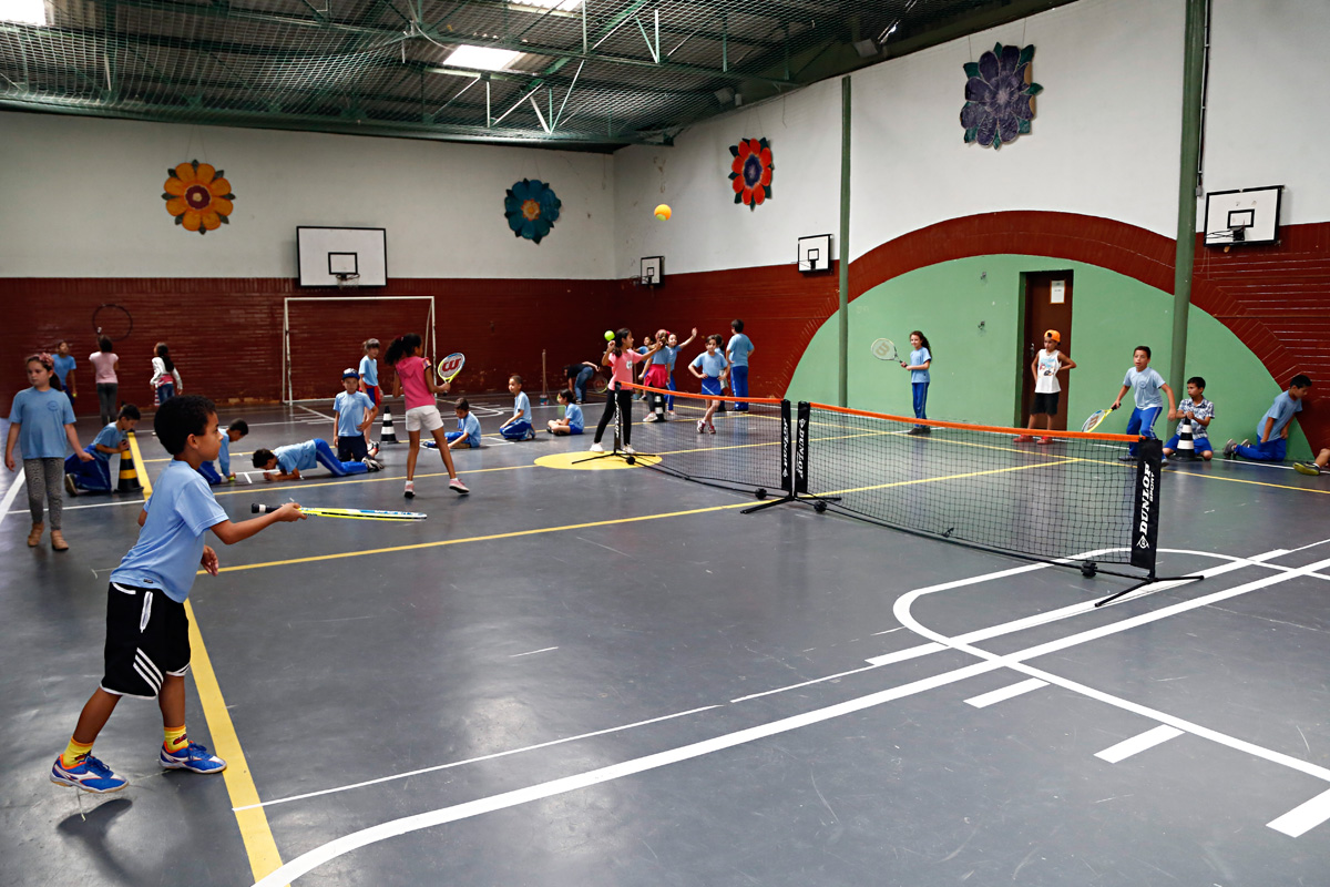 Como são crianças de 6 a 10 anos, do 1º ao 4º ano do ensino fundamental, os professores adaptam a metodologia, de acordo com a coordenação motora das turmas. “Para os pequenos, buscamos trabalhar de forma mais lúdica, com balões e brincadeiras com a bolinha”, explica Willian. Antes de manipular a raquete, as crianças treinam usando a mão, como os nobres que inventaram o esporte.