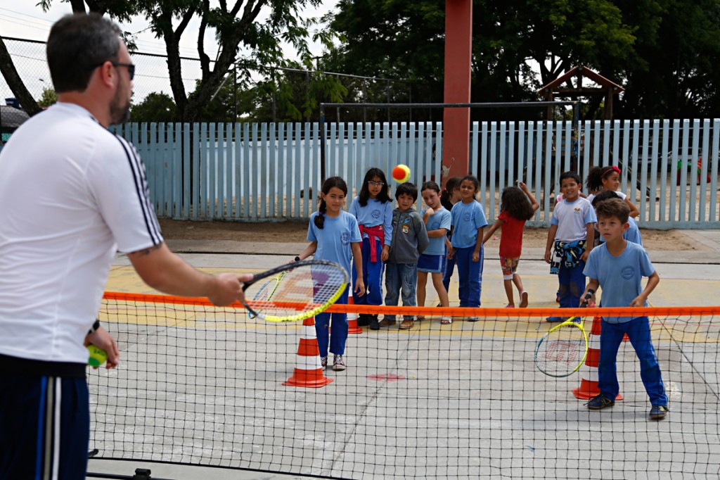 Como são crianças de 6 a 10 anos, do 1º ao 4º ano do ensino fundamental, os professores adaptam a metodologia, de acordo com a coordenação motora das turmas. “Para os pequenos, buscamos trabalhar de forma mais lúdica, com balões e brincadeiras com a bolinha”, explica Willian. Antes de manipular a raquete, as crianças treinam usando a mão, como os nobres que inventaram o esporte.