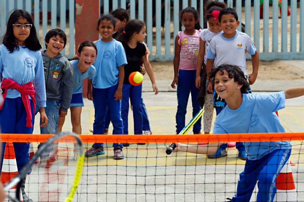 Os alunos do período integral da Escola Municipal Centro de Educação Integral Francisco Frischmann, no Pinheirinho, têm a oportunidade de praticar semanalmente um esporte considerado de elite: o tênis. Desde julho do ano passado, 16 turmas – cerca de 460 crianças – participam do projeto da rede municipal Tênis na Escola, e estão aprendendo a manusear a raquete e a rebater a bolinha. “Eu só conhecia da televisão, mas nunca tinha jogado. Estou gostando muito”, diz Nicole Camile da Silva, 7 anos, aluna do 2º ano.