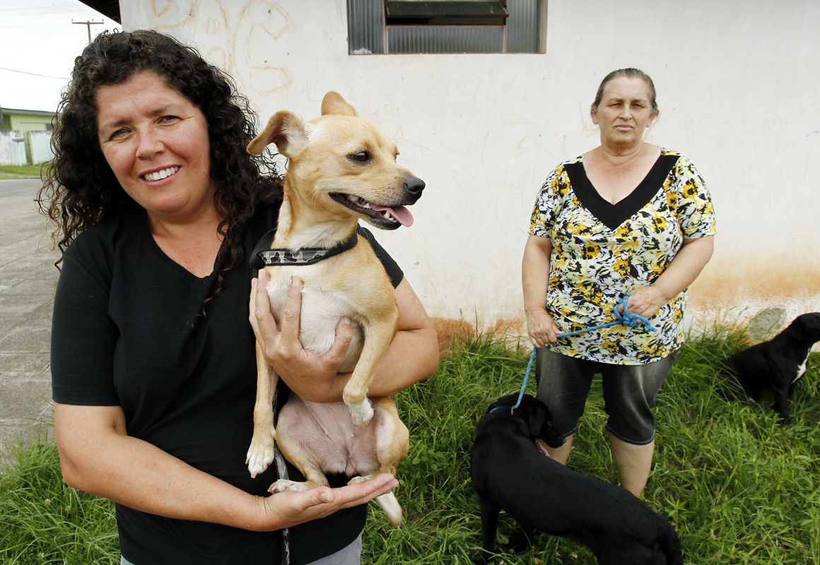 Um grupo de moradoras do Jardim Bandeirantes, em São José dos Pinhais, se uniu para cuidar, castrar, vacinar e dar uma condição de vida um pouco melhor para as dezenas de cães abandonados na região. Vivendo no bairro desde 1993, a recepcionista desempregada Adriana Alcântara Barbosa, 43 anos, conta que apenas ela cuida de aproximadamente 15 cães que vivem na rua, todos alimentados, apesar das dificuldades, com recursos que saem do próprio bolso. “As pessoas se mudam do bairro pra apartamentos populares e deixam os animais na rua. Tem também quem vem de outros lugares pra soltá-los aqui. Vendo o sofrimento, passamos a dar comida pra eles e a fazer as castrações, principalmente das fêmeas. Se não fosse isso, o número de cães nas ruas seria muito maior”, relatou. Nos últimos anos, as protetoras voluntárias do bairro já castraram mais de 30 cães.