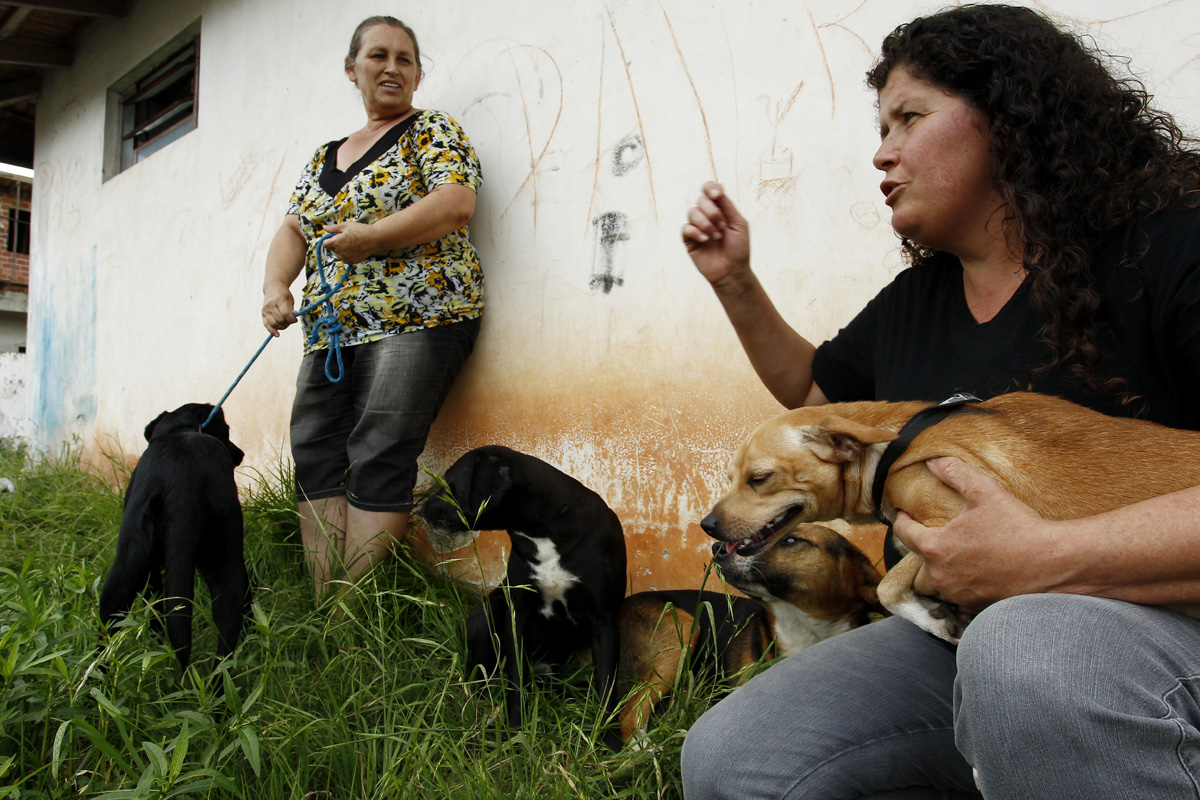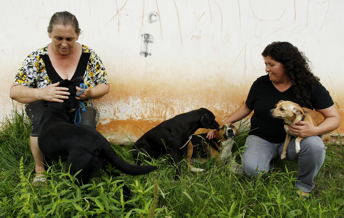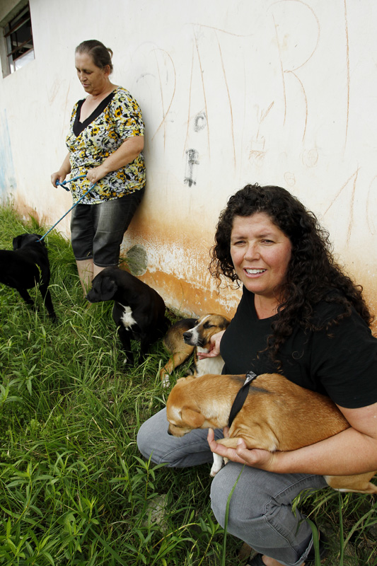 Como muitas estão sem emprego, fazem serviços de limpeza em uma clínica veterinária ou outros bicos pra pagar o serviço. Animais doentes ou feridos são levados a pé ou em um carrinho de mão até clínicas parceiras e faculdades, em percursos que, muitas vezes, duram mais de uma hora. Elas não recebem nenhum apoio do poder público. “Se todas as fêmeas fossem castradas, já resolveria boa parte do problema. Tem gente que não gosta, mas os animais não têm culpa, são seres vivos indefesos, que não pediram pra nascer”, diz a vendedora Elaine Carvalho, 46, que em três anos já resgatou mais de 15 cães e atualmente, mantém no quintal de sua casa dez animais, entre adultos e filhotes que esperam pela adoção.