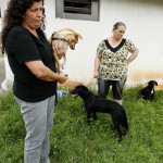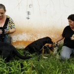 Adriana e Maria Roseli dão comida, água e carinho pros animais. Foto: Hugo Harada.