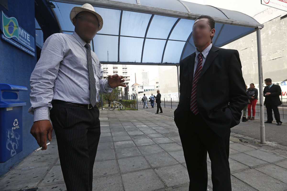 Em seguida, caso o abordado “valha a pena”, os atravessadores se oferecem para levá-lo a escritórios de advocacia próximos, dizendo que a consulta jurídica é gratuita. “É um assédio, são situações realmente nojentas”, diz o chefe da Seção de Inspeção de Trabalho da SRTE/PR, Elias Martins. “Já cheguei a flagrar um deles pegando a carteira de trabalho de uma pessoa e colocando no bolso, e o obriguei a devolver. É uma arapuca, os advogados botam os engravatados para passar uma espécie de confiança às pessoas, que acabam ludibriadas. É uma situação horrível.”