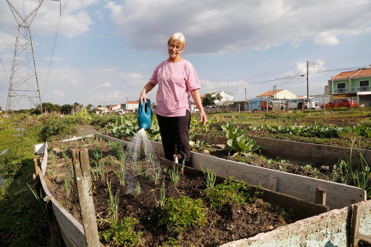 Os moradores cadastrados vão às hortas todos os dias, geralmente no início da manhã e no final da tarde. “A maior parte das pessoas que vêm são mulheres e aposentados. Os jovens falam bastante, mas não têm muito interesse em vir”, lamenta a aposentada Rose Mari Szkulny, 65 anos, que cuida de sua horta há oito anos. Além das verduras para consumo próprio, ela também distribui os alimentos entre familiares, vizinhos e uma creche do bairro. “Minha casa é pequena, aí limpo rapidinho e fico sozinha, sem ter o que fazer. Quando venho pra horta, me divirto e converso com as amigas”, conta. “Eu me criei no interior, mexendo com terra. Esse é um jeito de voltar no tempo, além de ser uma terapia para mim”.