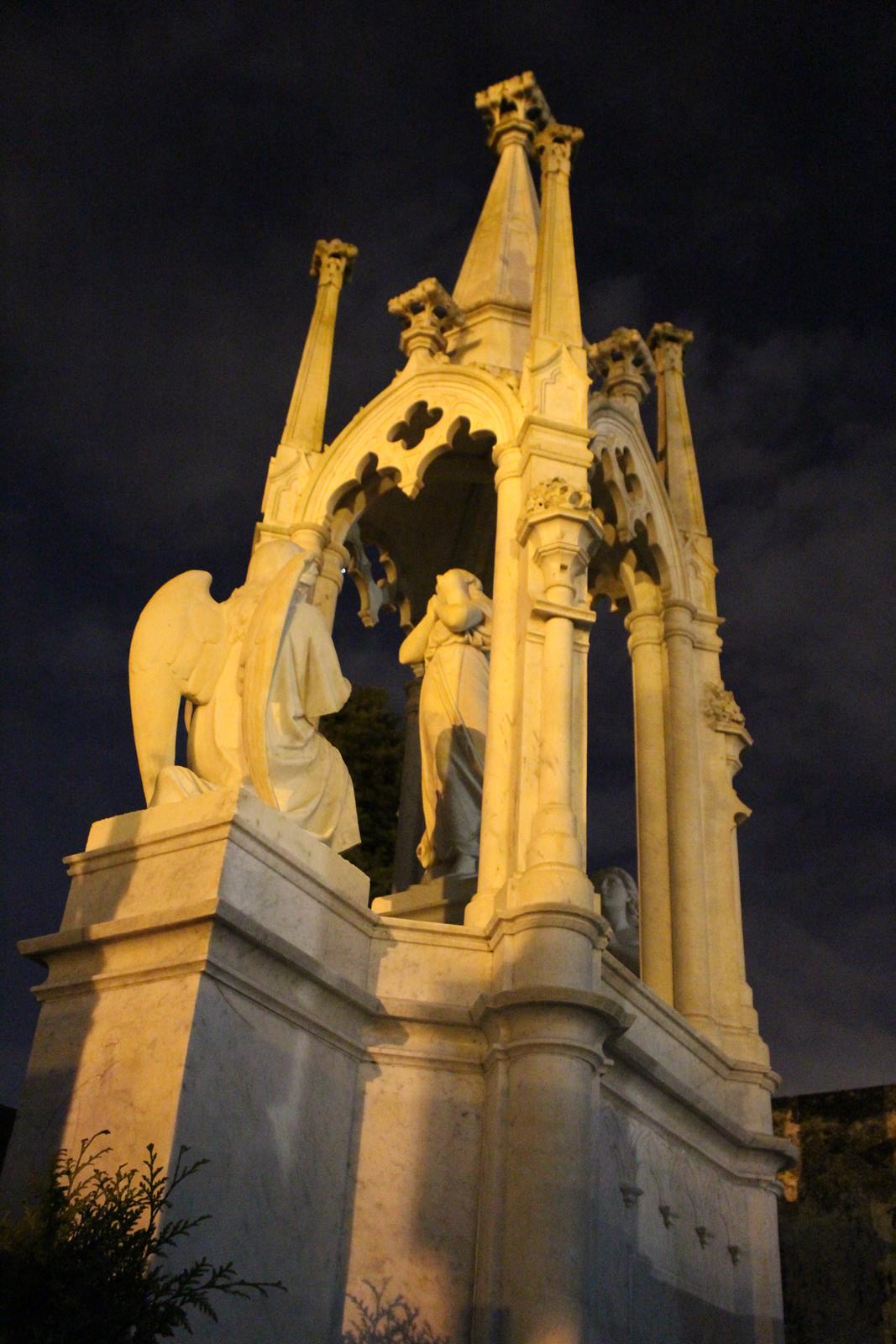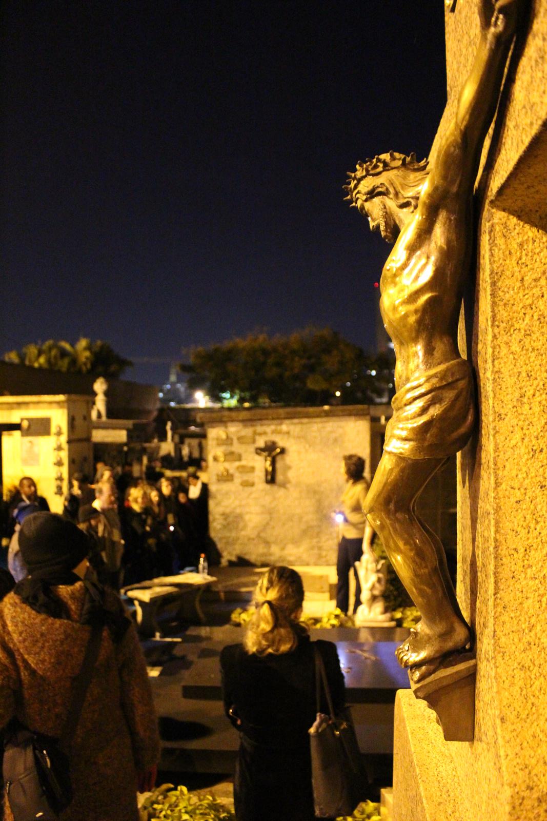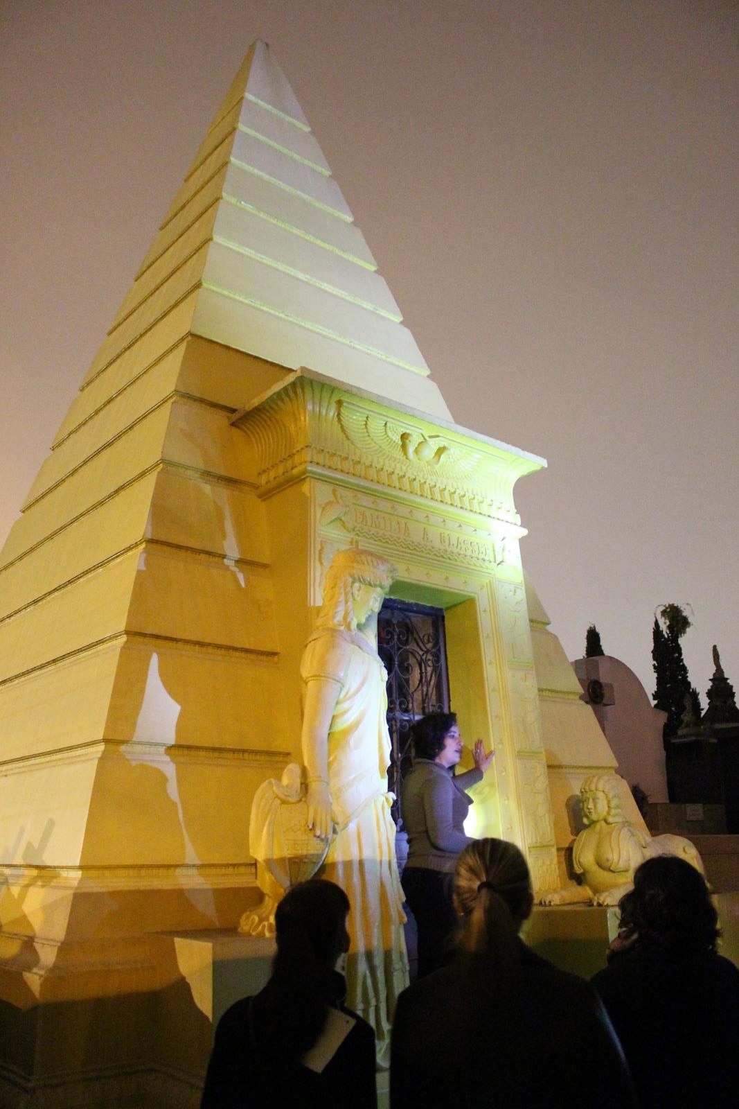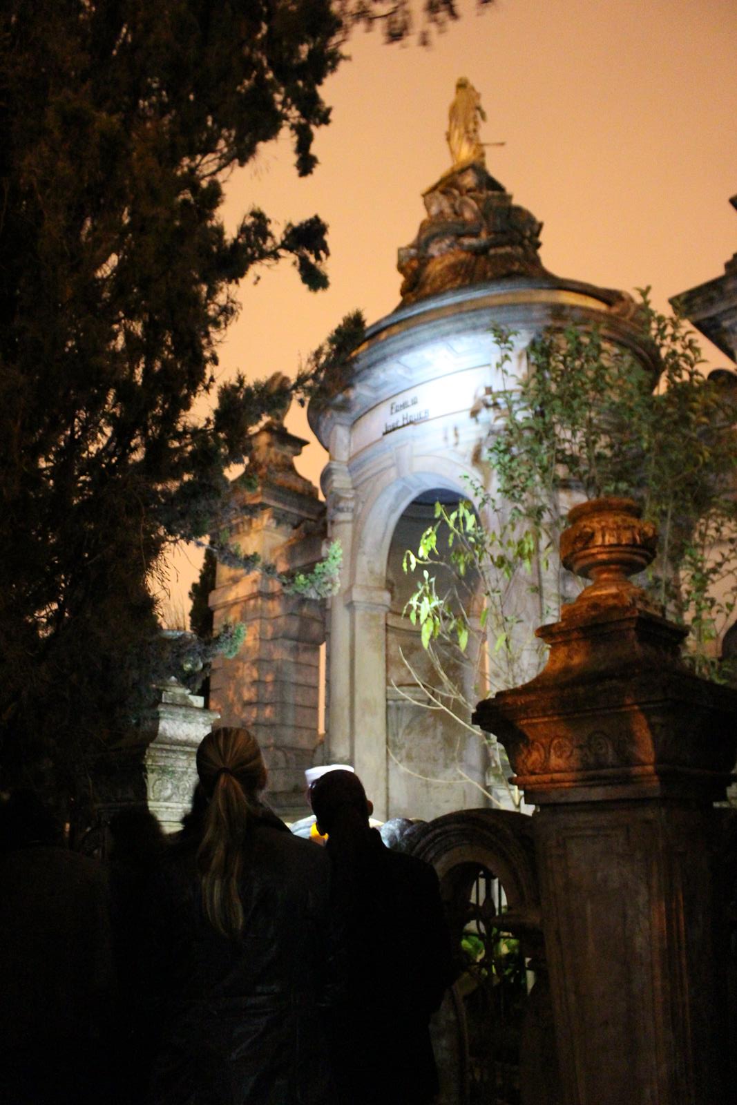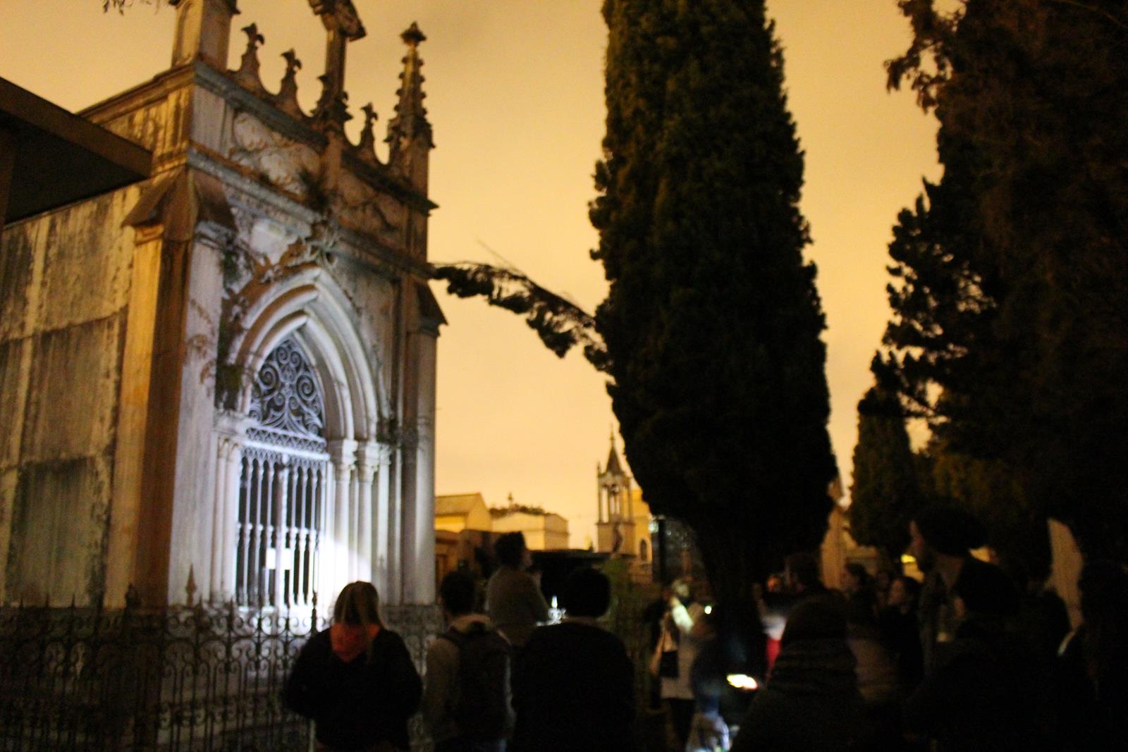 No trajeto pelo cemitério que abriga mais de 5 mil túmulos, as lanternas se projetam atentas a tudo o que Clarissa explica e mostra. Pouco a pouco, a história das construções vai se misturando ao histórico dos sepultados no cemitério como o do Barão do Serro Azul, o de André de Barros e José Hauer – todos que fizeram parte da história de Curitiba. Por ser no período noturno, talvez o sentido de percepção das coisas se faz ainda mais delicado e a atenção exigida permite que o visitante receba ainda mais informação.