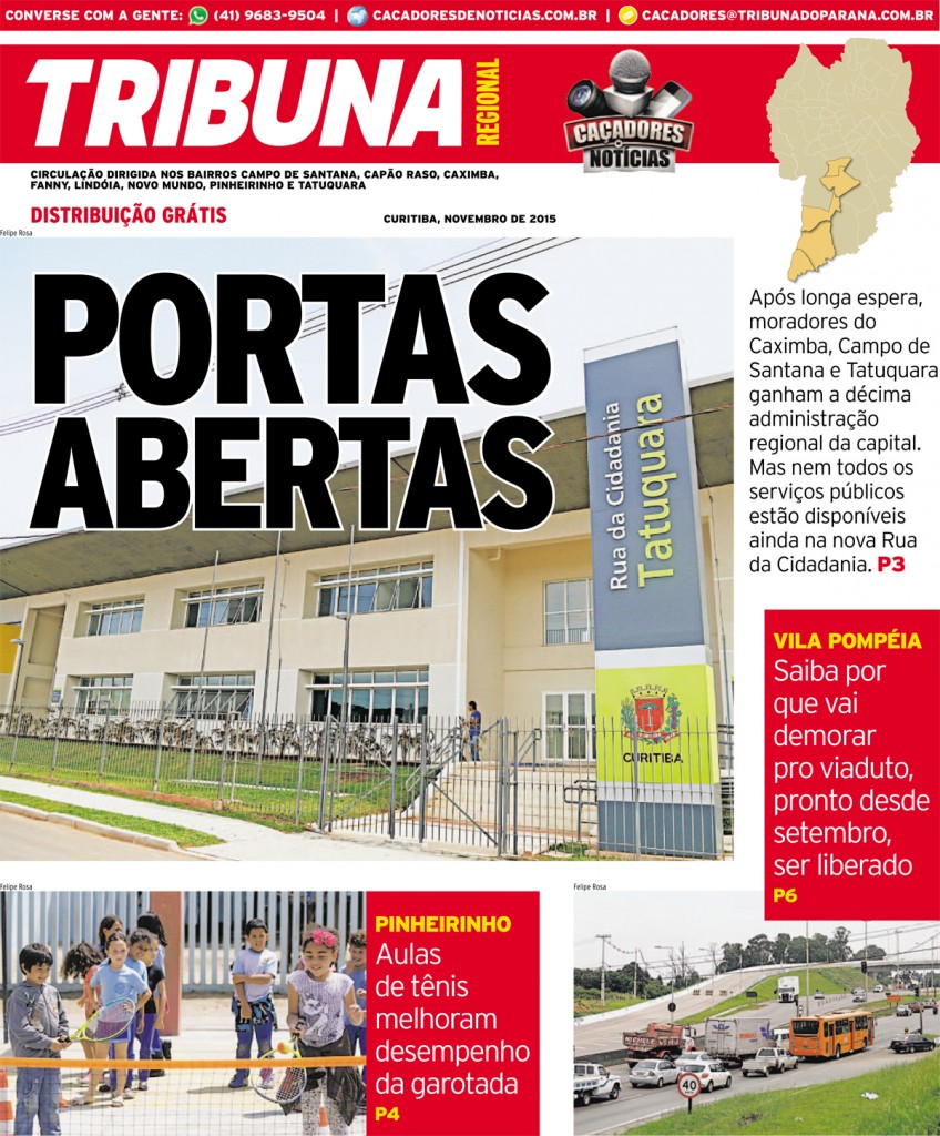 Confira na íntegra a edição impressa da Tribuna Regional Pinheirinho, publicada em 28/11/2015. As matérias desta edição também serão publicadas aqui no Caçadores de Notícias em breve.