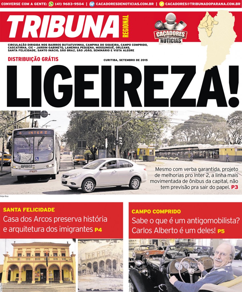 Confira na íntegra a edição impressa da Tribuna Regional Santa Felicidade, publicada em 05/09/2015. As matérias desta edição também serão publicadas aqui no Caçadores de Notícias em breve.