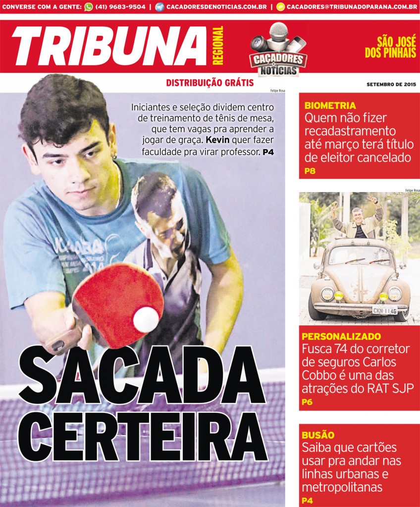 Confira na íntegra a edição impressa da Tribuna Regional São José dos Pinhais, publicada em 19/09/2015. As matérias desta edição também serão publicadas aqui no Caçadores de Notícias em breve.