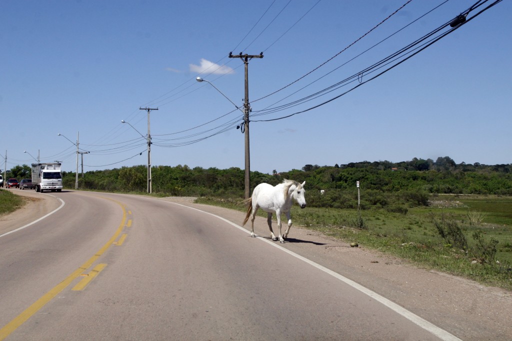 A equipe dos Caçadores de Notícias flagrou um cavalo andandando tranquilamente próximo da ponte sobre o Rio Iguaçu, entre a Rua Francisco Ferreira da Cruz, em Fazenda Rio Grande, a Rua Nicola Pellanda, já em Curitiba.