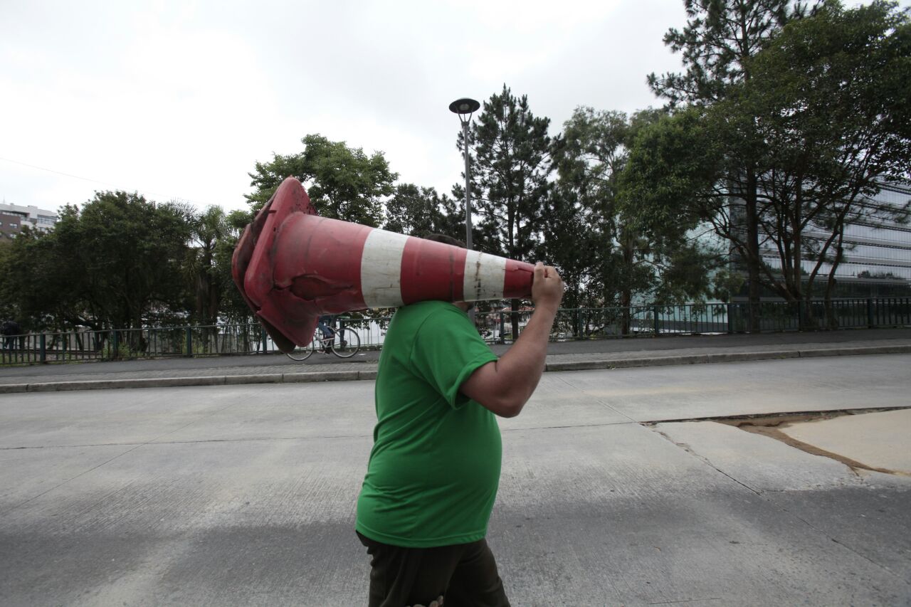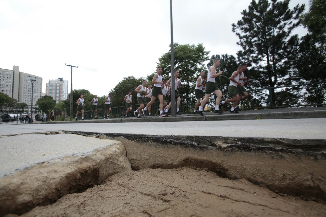 A cratera se formou na pista que vai sentido bairro e espanta pelo tamanho. Um motorista da linha Centenário/Campo Comprido, que se identificou apenas como “Portela”, afirmou que a circulação pela canaleta exige destreza. “O buraco fica numa subida. Então quem vai sentido bairro só enxerga o problema quando está em cima. Tem que ser rápido para conseguir desviar”, disse.