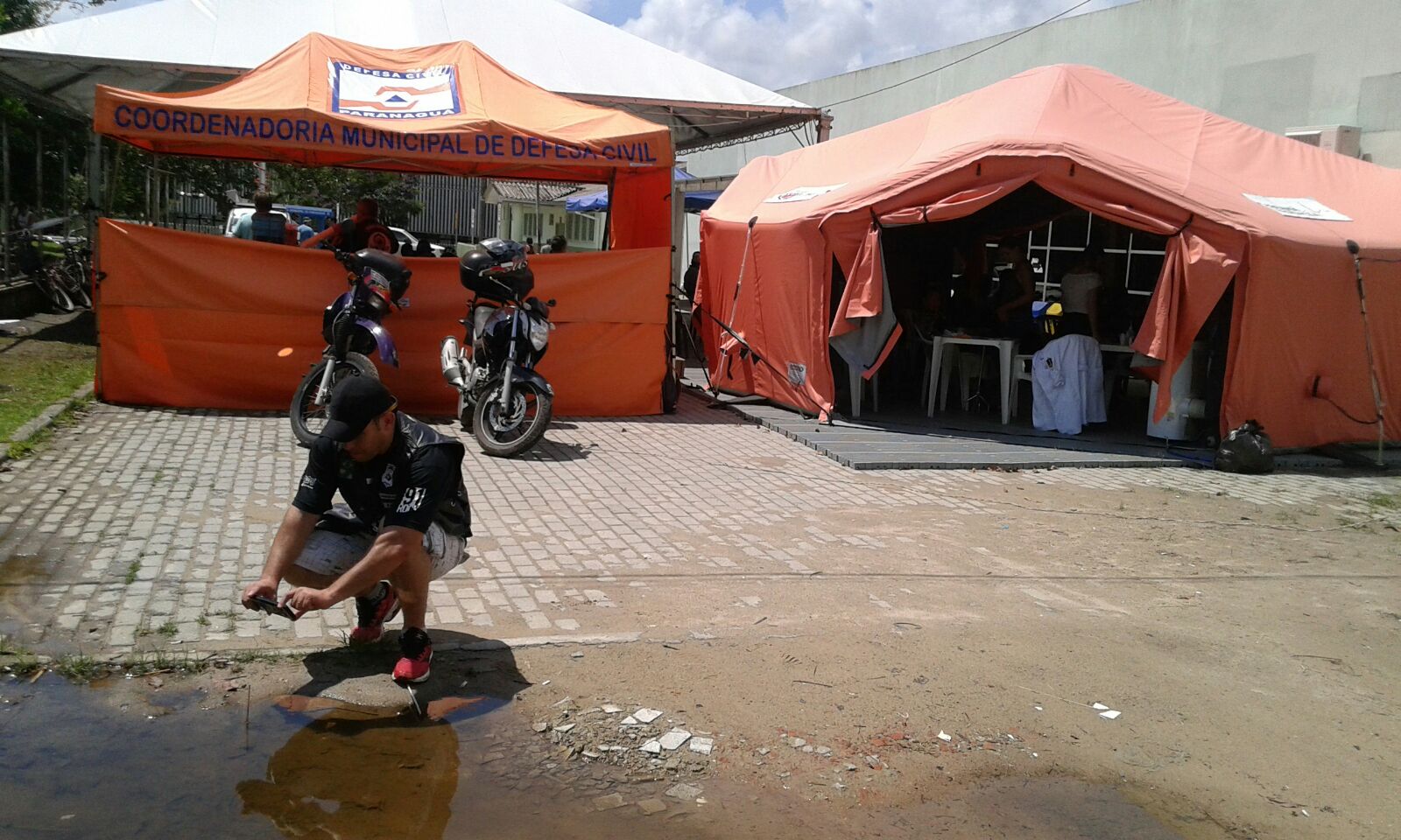Debaixo de uma tenda montada em frente à UPA, de 800 a mil pessoas esperavam ser chamadas, sob forte calor e sem nenhuma assistência, todos os dias. ‘O povo não tinha nem água, e a hidratação é a medida mais importante para quem está com suspeita de dengue. De noite, não tinha iluminação na tenda, eles ficavam no escuro. Fomos nós que colocamos as lâmpadas e trouxemos mais cadeiras‘, conta o eletricista autônomo Leverson Capeta, 38 anos, o Nenê, membro do motoclube Cavalo de Aço.