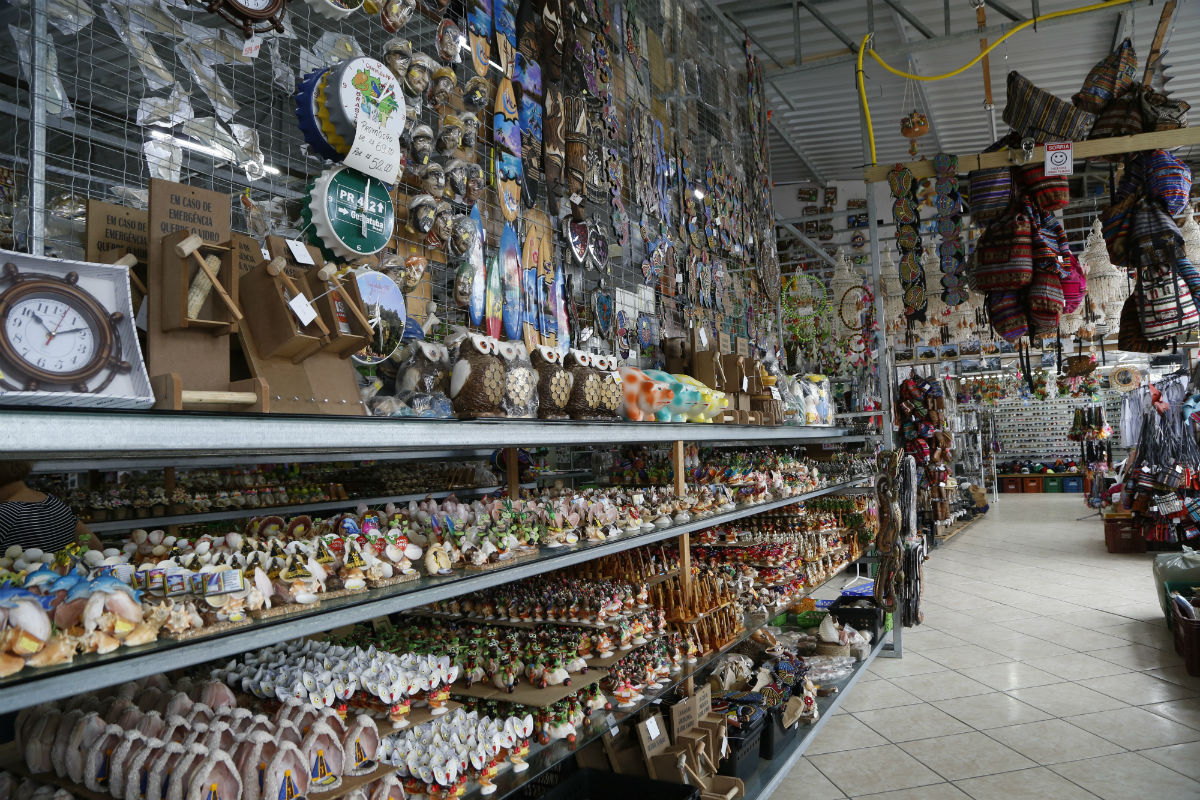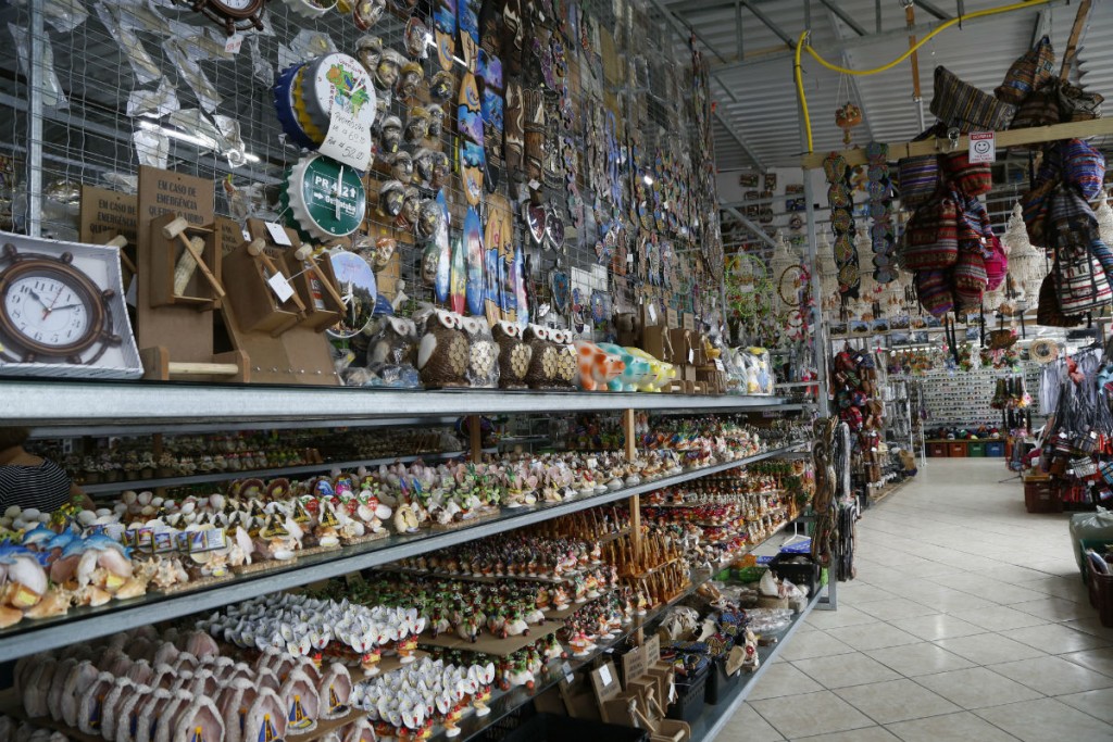 A loja vende centenas de “mimos” e, além de ter produtos feitos na cidade litorânea, há produtos que vêm do Peru também, como bolsas, mochilas e sapatos. A variedade é enorme, literalmente, e traz muita dúvida para quem passa por ali. Afinal, o que levar? “Eu estou viajando de moto com um grupo de amigos e a gente resolveu visitar a loja. Tem muitos produtos legais e nós adoramos, mas estou em dúvida do que levar porque tem muita coisa”, comenta a turista Maria Aparecida Alves, 61 anos. “Somos de Tubarão, em Santa Catarina, e pretendo levar uma lembrança desse passeio”.