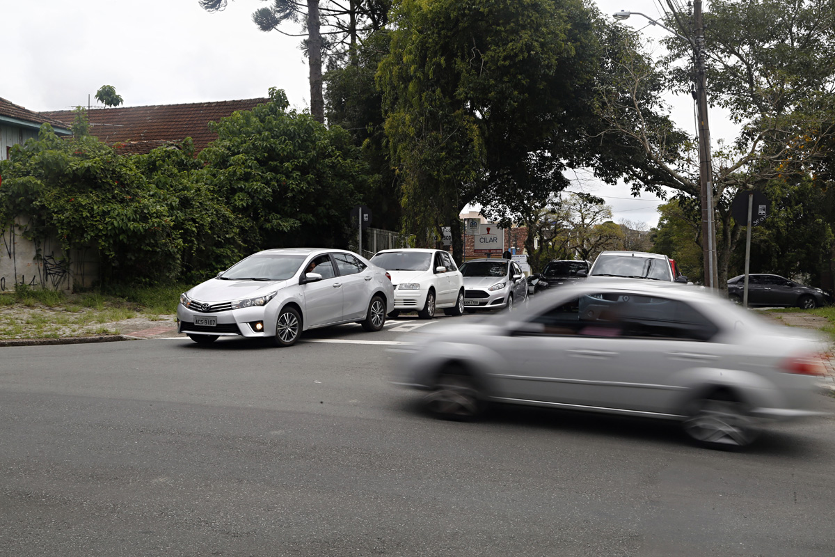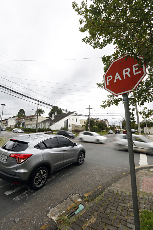“Eles vêm embalados, pegam essa descida e passam correndo”, diz o aposentado, que aponta o declive da rua. Segundo ele, quem vem pela Desembargador Vieira Cavalcanti tem a visibilidade atrapalhada por árvores plantadas ao longo da Júlio Perneta. Ao pararem no cruzamento, os condutores têm de avançar bastante para conseguir visualizar e fazer a travessia com segurança.