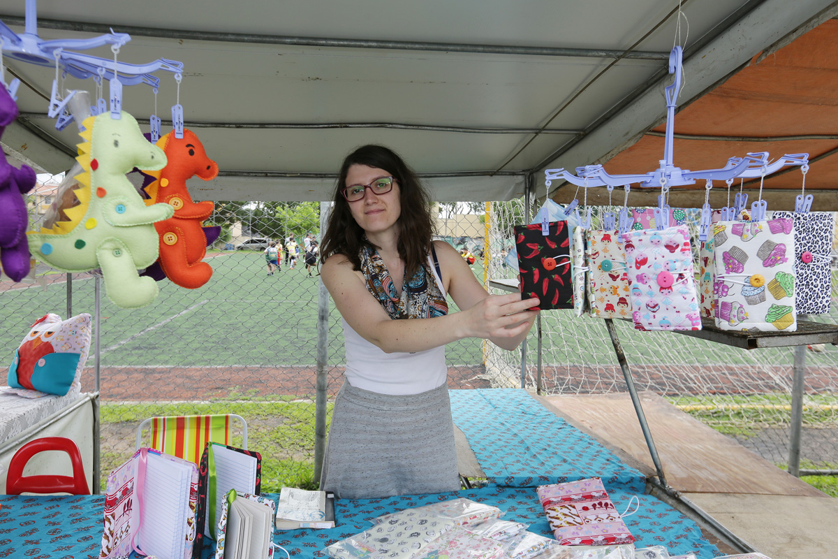 Entre enfeites pra casa, artesanatos em madeira, patchwork e aromatizadores, a feira também oferece petiscos, como pastéis de costela e feitos com polvilho. O grande destaque do evento, que conta com cerca de 25 expositores é justamente o seu modo de gerenciamento: é a primeira da cidade que não está sob a direção da prefeitura, mas da associação do bairro.