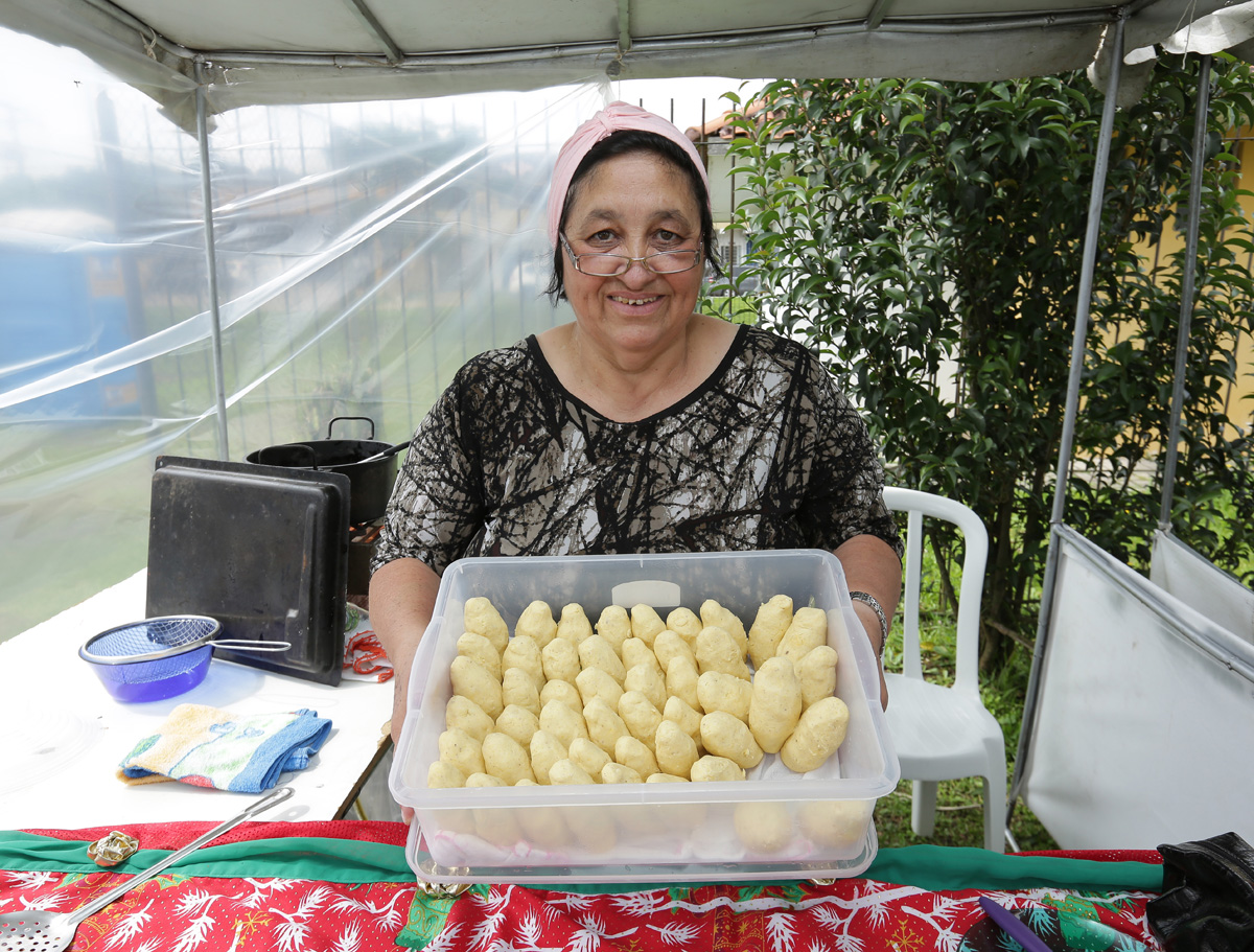 A artesã Maria Luisa Salles expõe seus quadros em scrapbook pela primeira vez. Antes, vendia as peças, que aprendeu a fazer como terapia, para os conhecidos e familiares que a visitavam. Agora, tem a chance de ver sua arte chegar a mais gente da vizinhança e complementar a renda familiar, como faz a companheira de barraca, Janete Krajewski Dalpério, com suas artes em madeira.