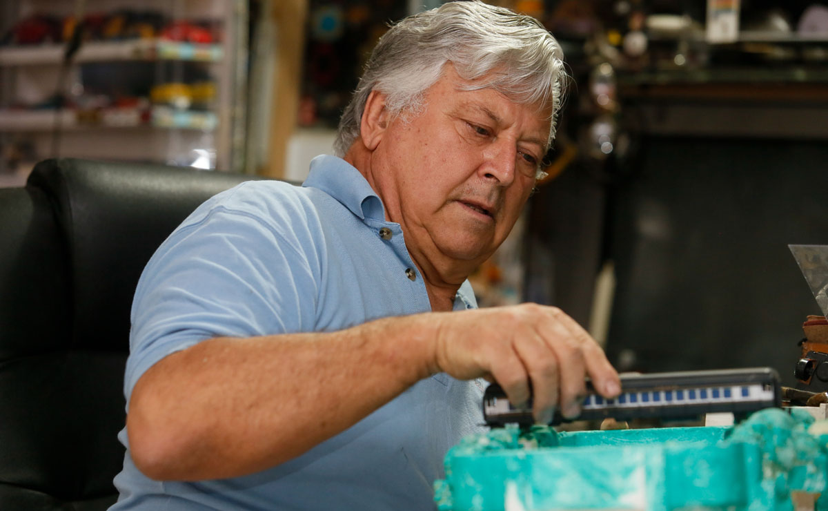 “Dominada” pelas coleções, a casa dos Fogiatto exige cuidado de quem por lá circula, afinal, por todos os cantos “se periga” esbarrar em algo valioso para o aposentado. Entre os itens, a réplica de um navio francês em miniatura e – pasme – um mascote do próprio “Lampadinha”, assistente do Professor Pardal, da Disney, são seus prediletos. Ao acompanhá-lo, porém, pelos corredores da casa, não é difícil notar o apreço que tem por cada um de seus artigos, incluindo um busto do mitológico monstro “Minotauro” e uma enorme maquete construída por ele próprio.