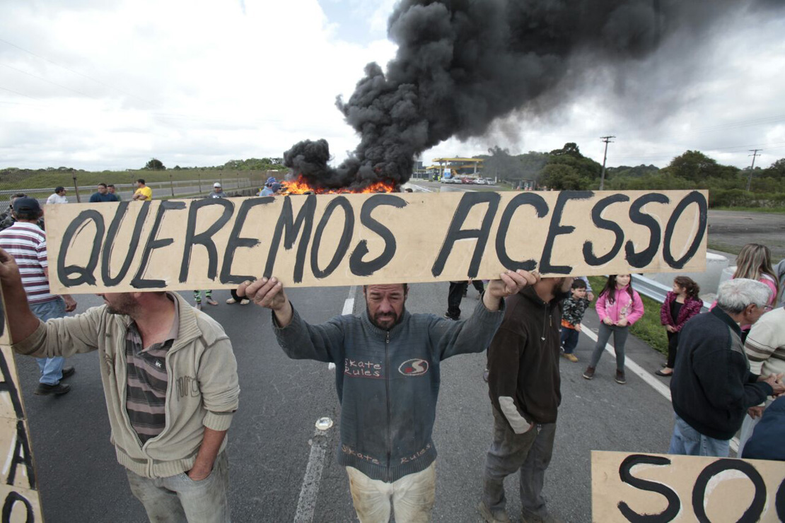 Moradores e comerciantes do bairro Guarituba, em Piraquara, Região Metropolitana de Curitiba, realizaram um novo protesto na manhã desta quarta-feira (1º). Eles são contrários ao fechamento de um acesso localizado no quilômetro 90 do Contorno Leste, a BR-116. No último dia 18, após uma grande manifestação feita por moradores que deixou o contorno fechado por cerca de duas horas, o local foi bloqueado com manilhas.