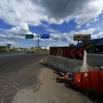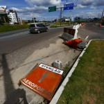 Já o motorista que segue no sentido aeroporto se depara, há meses, com um canteiro de obras. Cones, placas e bandeiras indicam a presença de trabalhadores. Mas tudo isso não passa de aparência. Toda a bagunça já se tornou parte do cenário na bifurcação entre a via que segue ao aeroporto Afonso Pena (pela Rua Comandante Aviador José Paulo Lepinski) ou a BR-376. A má sinalização oferece, além de tudo, um risco aos motoristas.