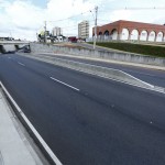 Alguns quilômetros à frente e logo depois do portal de São José dos Pinhais, a trincheira da Rua Arlindo Costa, sob a Avenida Comendador Franco, já é utilizada, mas ainda não está pronta. A sinalização não está completa e, para os pedestres, o perigo é ainda maior. Na passarela, não há corrimão e nem mesmo grades de proteção. Há apenas algumas barreiras, resquícios da obra, mas que são facilmente rompidas.