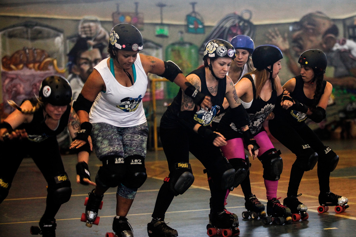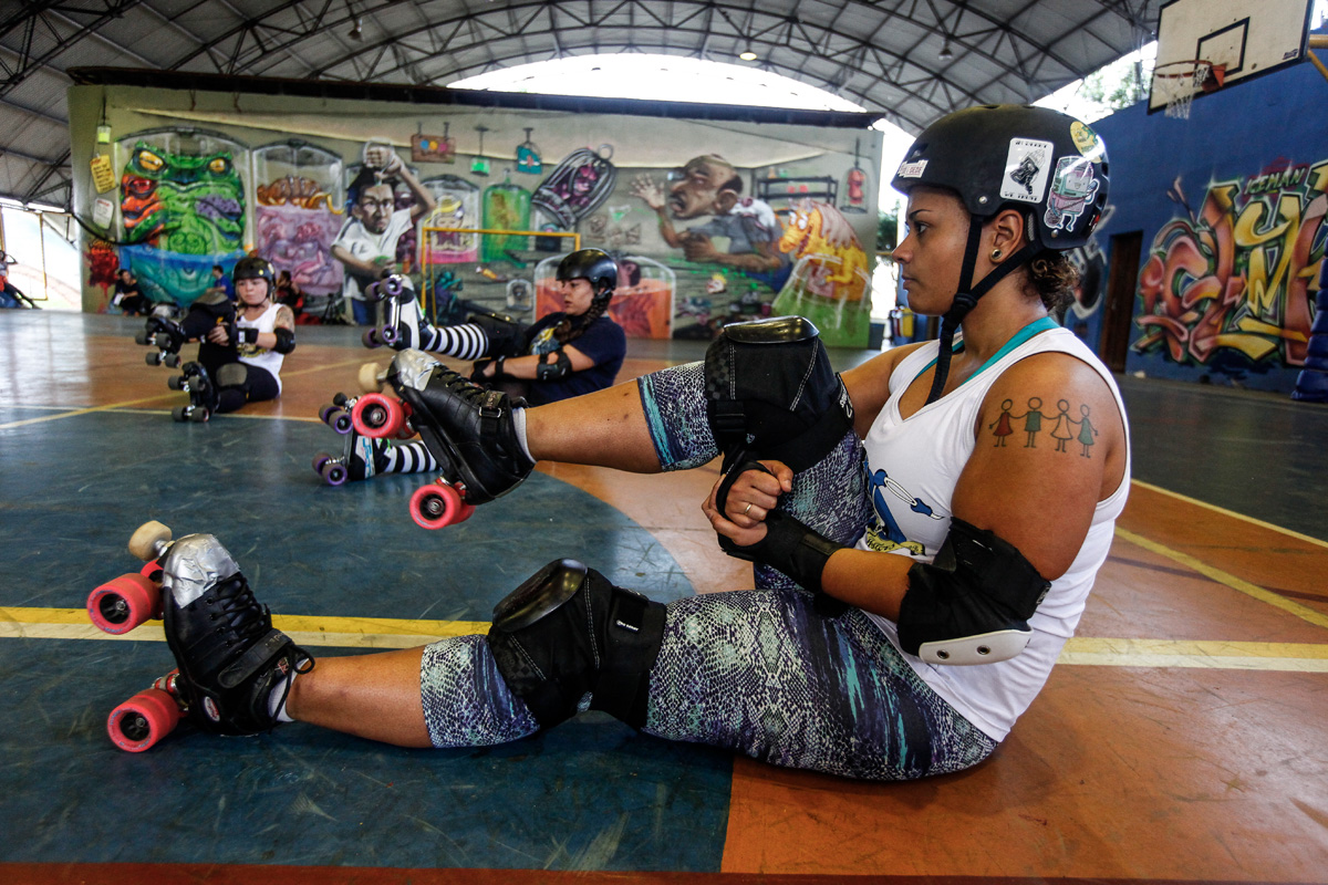 O roller derby, sabe-se lá por qual motivo, tornou-se uma modalidade predominantemente feminina e que valoriza a união das jogadoras e desafia o poderio masculino no esporte. “Historicamente, mais homens praticam esportes que as mulheres e o roller derby tem essa ideologia de valorizar a força, a velocidade das mulheres”, destaca a psicóloga Rafaela Mayer, 29. Enquanto ela e as outras garotas deslizam na pista, namorados e maridos assistem, à beira da quadra.