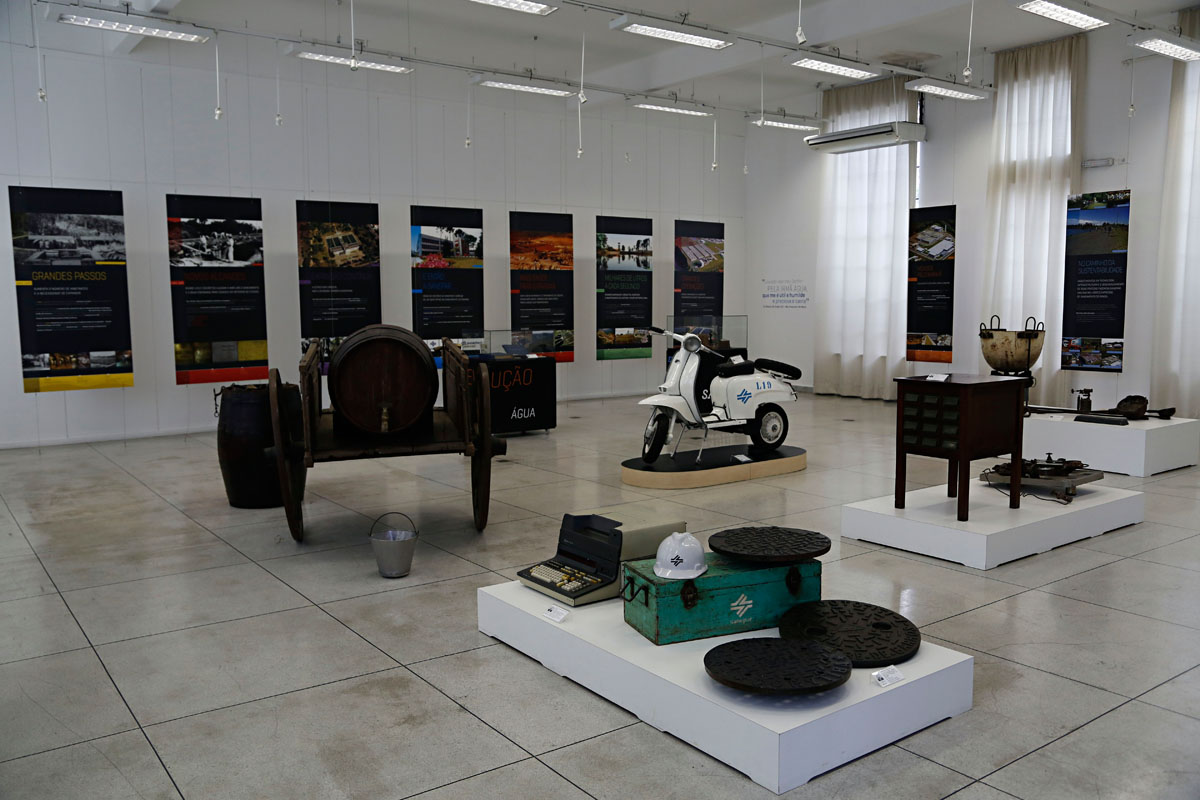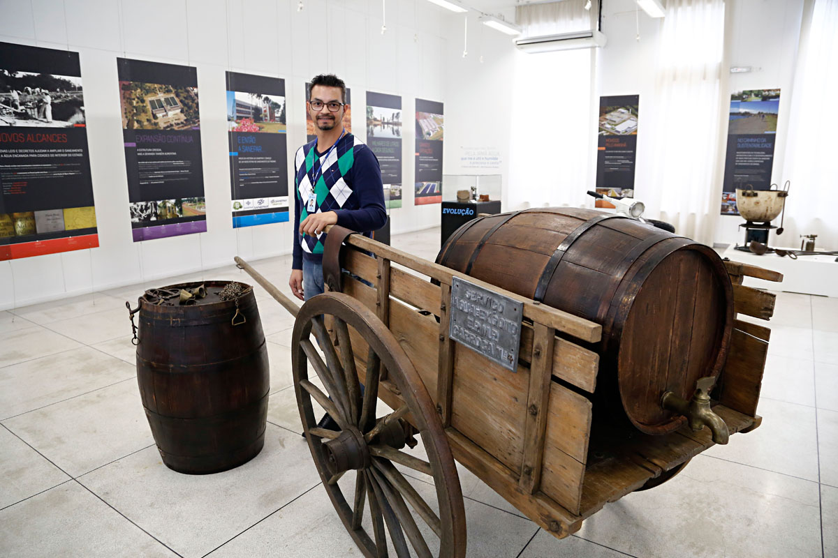 No salão principal, o visitante inicia a viagem ao passado revivendo o antigo ritual dos primeiros trabalhadores da empresa e batem o cartão para daí sim entrar na sala principal de exposições. Ali, é possível ver como os “pipeiros” usavam carroças para transportar o barril apelidado de “pipa” para abastecer Curitiba. “É interessante mostrar a importância que o saneamento teve para o crescimento do estado. Hoje conseguimos água tratada apenas abrindo uma torneira e nem sempre foi assim”, comenta Junio.