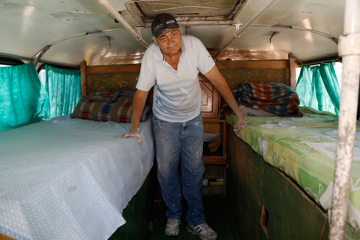 Não dá para ficar indiferente ao antigo ônibus Mercedes-Benz que percorre várias cidades levando peças decorativas de gesso, confeccionadas pelo condutor e morador do veículo, o artesão José Carlos Teobaldo, 58 anos, também conhecido por Carlão. No mês passado, ele ficou instalado algumas semanas no Uberaba, em um trecho da Rua Doutor Gabriel Ferreira Filho, quase esquina com a Rua Augusto Steembock. Seguindo a rotina dos últimos seis anos, comercializou peças de gesso, fabricou novas e ainda ensinou o ofício gratuitamente.