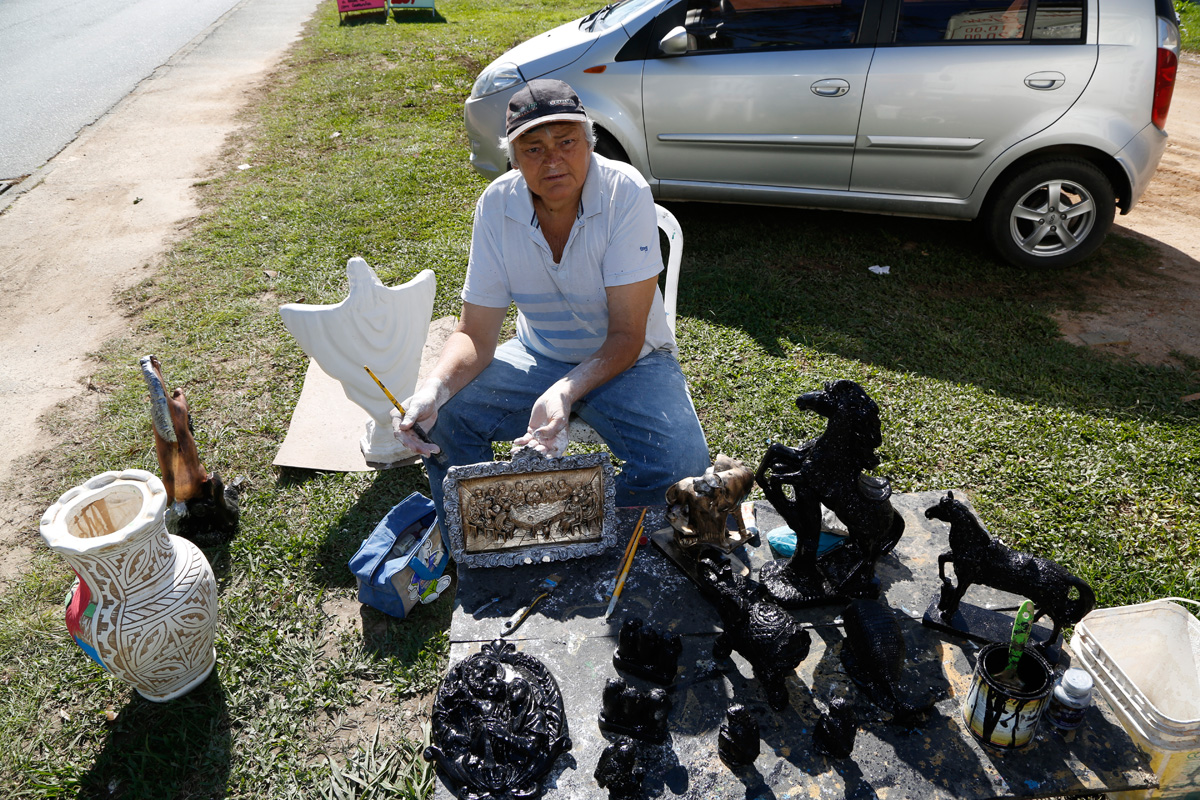 ‘Aprendi a trabalhar o gesso com um artesão, o Bira de Fazenda Rio Grande, que me ensinou sem cobrar nada. Com esse trabalho nunca me faltou dinheiro para comer e nunca precisei ter patrão‘, revela. ‘Saber que mais um pai ou uma mãe de família podem levar o sustento para casa através daquilo que eu ensinei me deixa mais feliz do que a pessoa que ensinei‘.