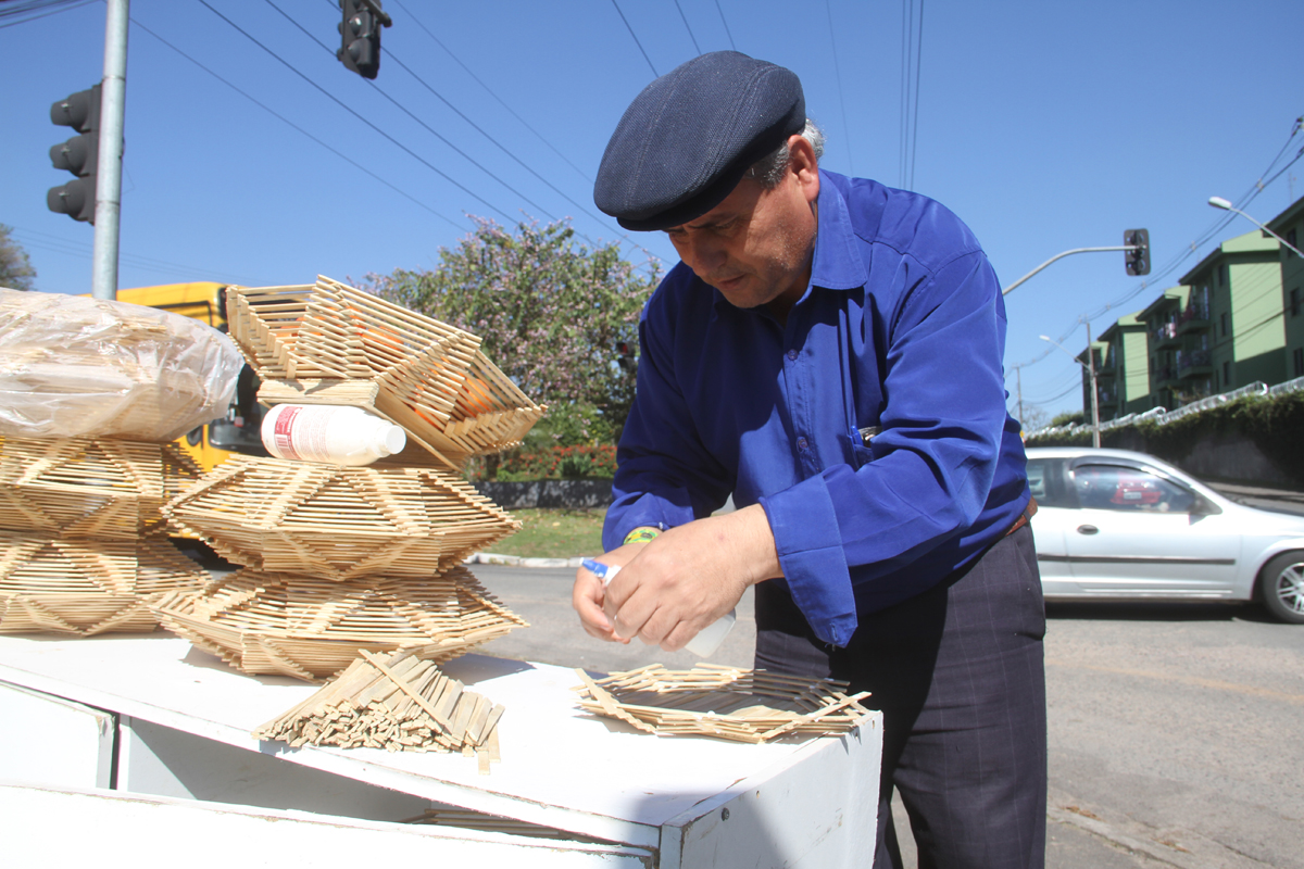 Ele escolheu um ponto com alto fluxo de veículos e pessoas no Uberaba, na esquina das ruas Doutor Gabriel Ferreira Filho e Augusto Steembock, e iniciou as vendas no dia 23 de julho. Cada peça de 40 centímetros leva em média 128 palitos de sorvete e Aguinaldo consegue fazer na hora pro cliente. “Levo uns 20 minutos e, se tudo der certo, vou ensinar outras pessoas”. As fruteiras são vendidas por R$ 20 e o cachepô por R$ 30. Aguinaldo também produz sob encomenda pelo (41) 9980-6380.