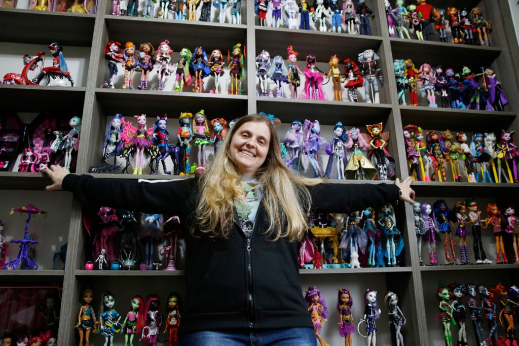 Aos 38 anos, a coordenadora de seguradora Andreia Gonçalves não tem vergonha de dizer que tem uma coleção de bonecas. Em 2010, passou na frente de uma vitrine, achou uma bonita e imediatamente ganhou o brinquedo de presente do marido. A personagem Draculaura, dos filmes e livros Monster High, foi a primeira das 128 que ela tem hoje em sua casa, no Uberaba.