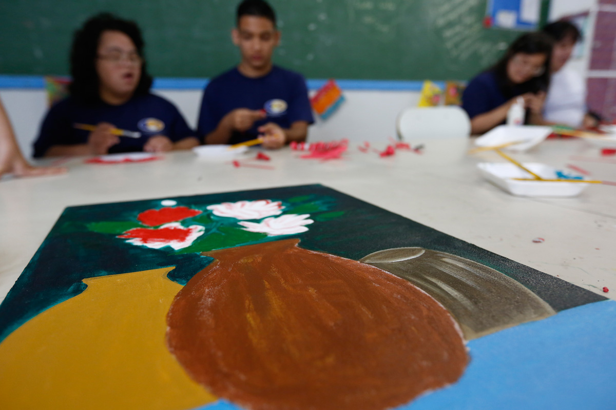 A Escola de Educação Básica Guilherme Canto Darin, mantida pela Associação Paranaense para o Desenvolvimento do Potencial Humano (APADEH), é a única opção para a maioria de seus 150 alunos com deficiência intelectual e múltipla. Na sede, que fica na Vila Izabel, eles passam 10 horas e 20 minutos diários realizando atividades pedagógicas, lúdicas e culturais, além de fazerem refeições. ‘Quase todas as famílias dos nossos estudantes ou são paupérrimas ou estão em situação de vulnerabilidade. Se eles ficarem sem escola, ficam sem comer, desassistidos‘, afirma a diretora pedagógica, Alessandra Mikilita, sobre a importância da instituição.