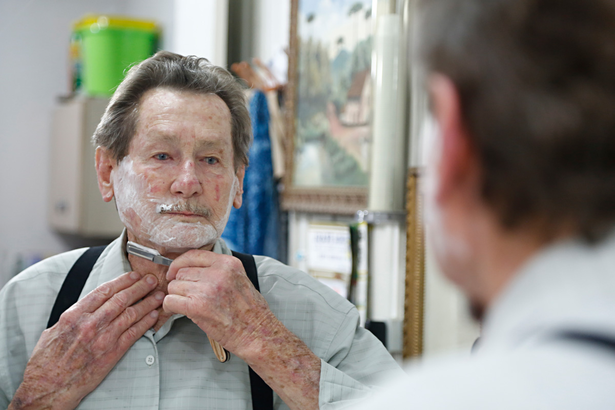 Depois que se despede de seus clientes, o barbeiro Walter Butzke, 83 anos, tem uma espécie de ritual: ficar observando como ficou seu serviço até perder a pessoa de vista. “Quando o cliente sai eu fico olhando se o cabelo está bem cortado. Eu gosto de ver um cabelo bem cortado”, revela ele, que está prestes a completar 70 anos na atividade.