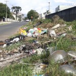 Sujeira nas ruas do Hauer e do Xaxim deixa moradores revoltados com porcalhões e demora na coleta. Foto: Giuliano Gomes.