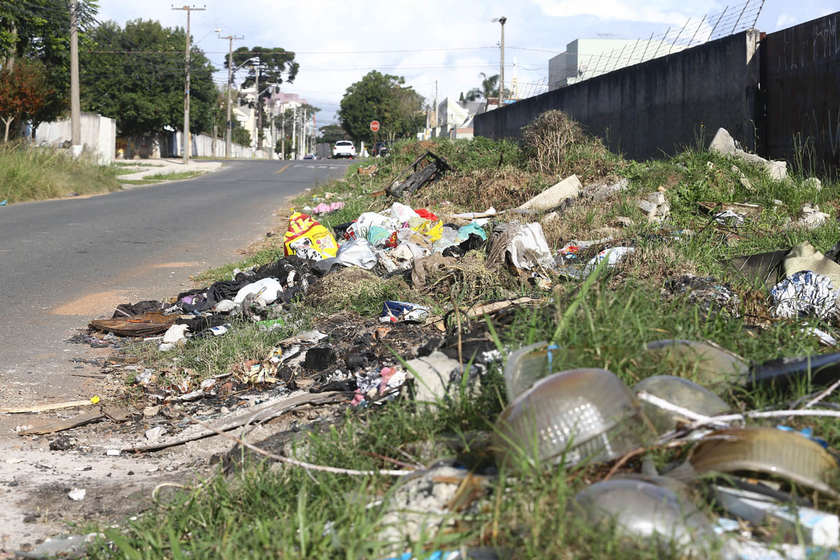 Sujeira nas ruas do Hauer e do Xaxim deixa moradores revoltados com porcalhões e demora na coleta. Foto: Giuliano Gomes.