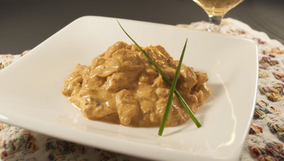 Mesmo com especialidade em frutos do mar, o Coco Bambu serve strogonoff com creme de leite e cogumelo paris frescos. O prato serve uma pessoa e custa R$ 93.
