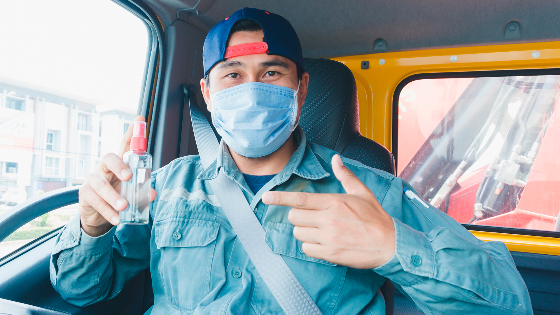 * Sempre que chegar ao local de parada, lave as mãos com água e sabão e seque bem. Quando entrar no caminhão, use álcool gel nas mãos;