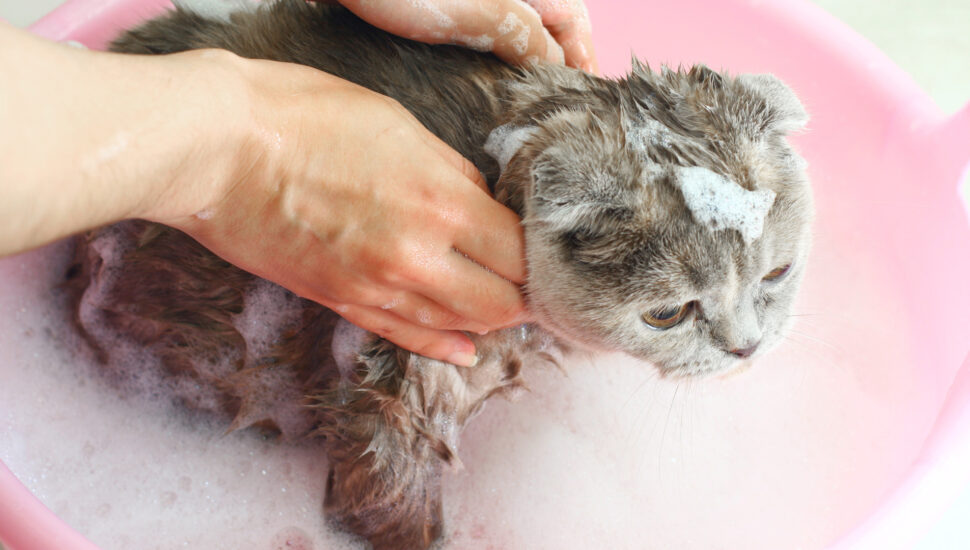 Nestes casos, o banho é recomendado. Porém, atenção à frequência: uma vez por mês é suficiente. - Posso dar banho em gatos com produtos para humanos?