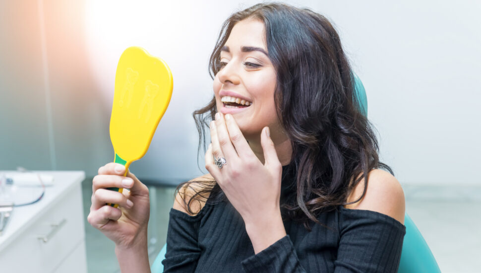 O procedimento, feito através de uma cirurgia, consiste em fixar uma prótese utilizando um parafuso de titânio para substituir a raiz do dente. Assim, é possível conquistar o seu sorriso de volta.