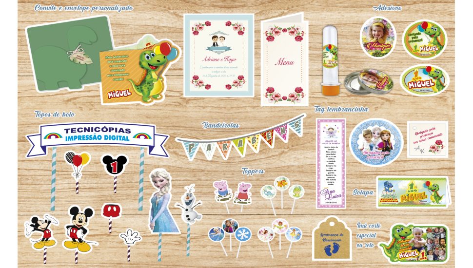 Quem ouve falar em impressão digital pode pensar que ela é usada somente em projetos profissionais e em grandes quantidades. Mas não é. Com a evolução da técnica de impressão, ela ficou mais acessível a todos. Então, que tal investir naquela festa – no momento, apenas para a família e/ou transmitida online – com toppers para bolo, tags para doces, cartazes, lembrancinhas? E tudo personalizado e impresso com qualidade superior?